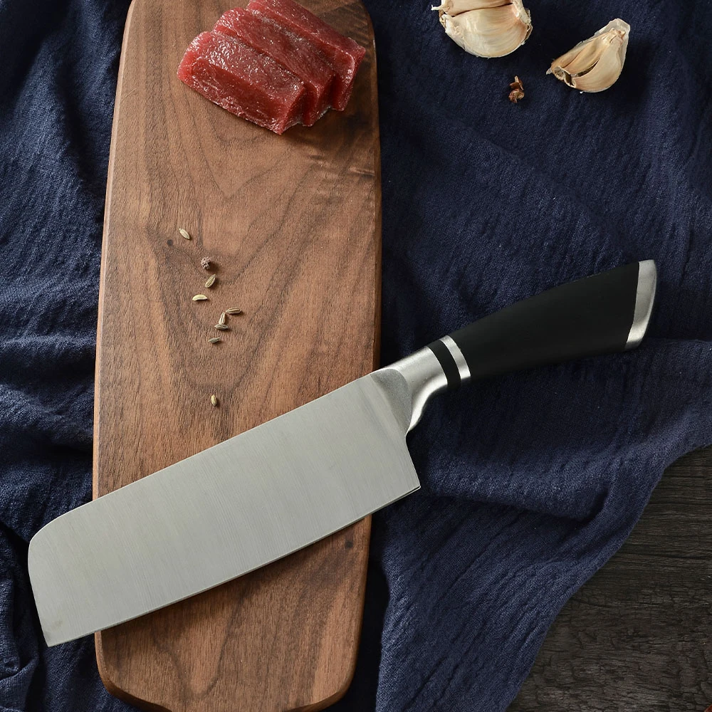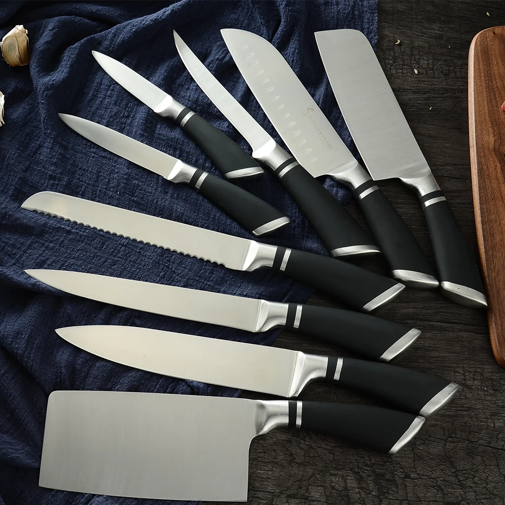 И ножевой рукояти-нержавеющая сталь АБС-материала, эргономичный дизайн, с антипригарным покрытием, светильник вес, удобная и экономия труда, легко резать, длительный срок службы.