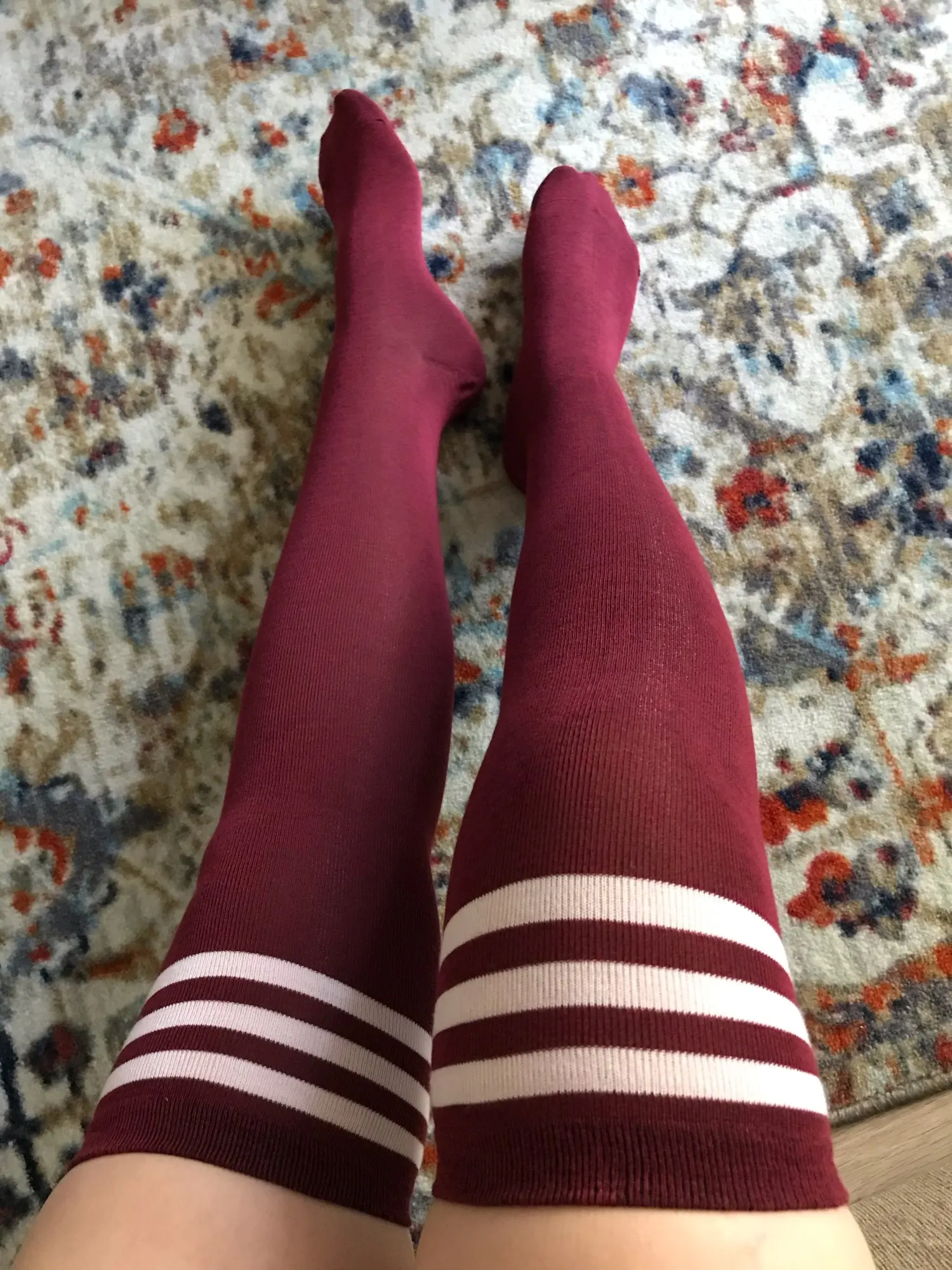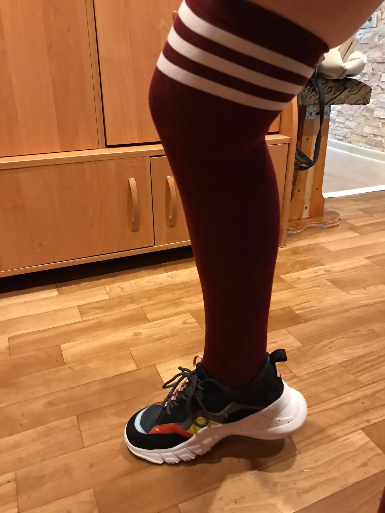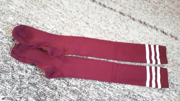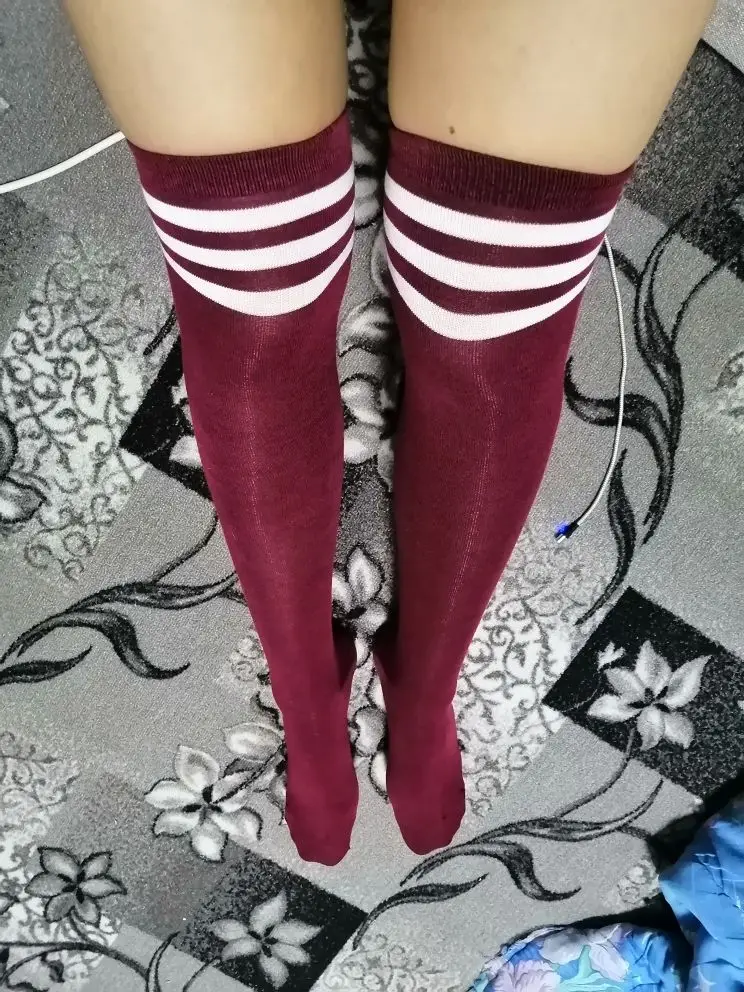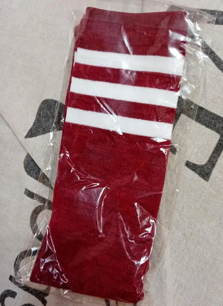 Гольфы с белыми полосками оказались длиннее, чем с красными. Сверху резинка туговата, на полую ногу будет давить.