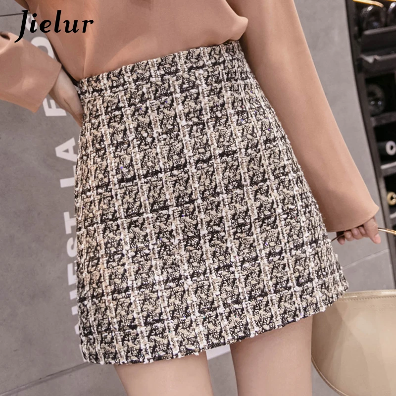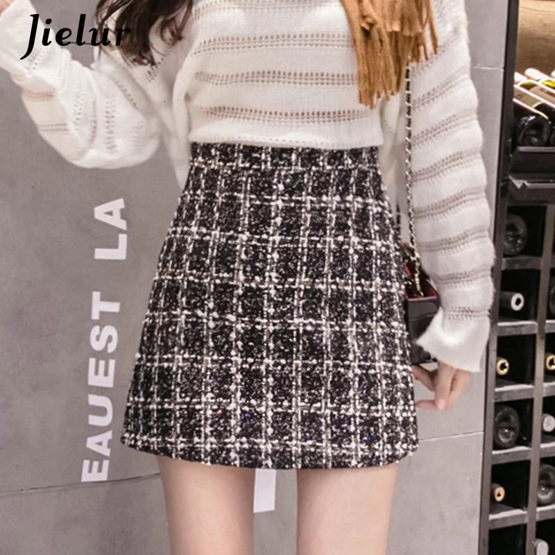Jielur осенне-зимние мини-юбки для хлопок женщин в клетку с высокой талией в упаковке в стиле хип короткая простая уличная повседневная Женская юбка Молодежная шикарная Jupe