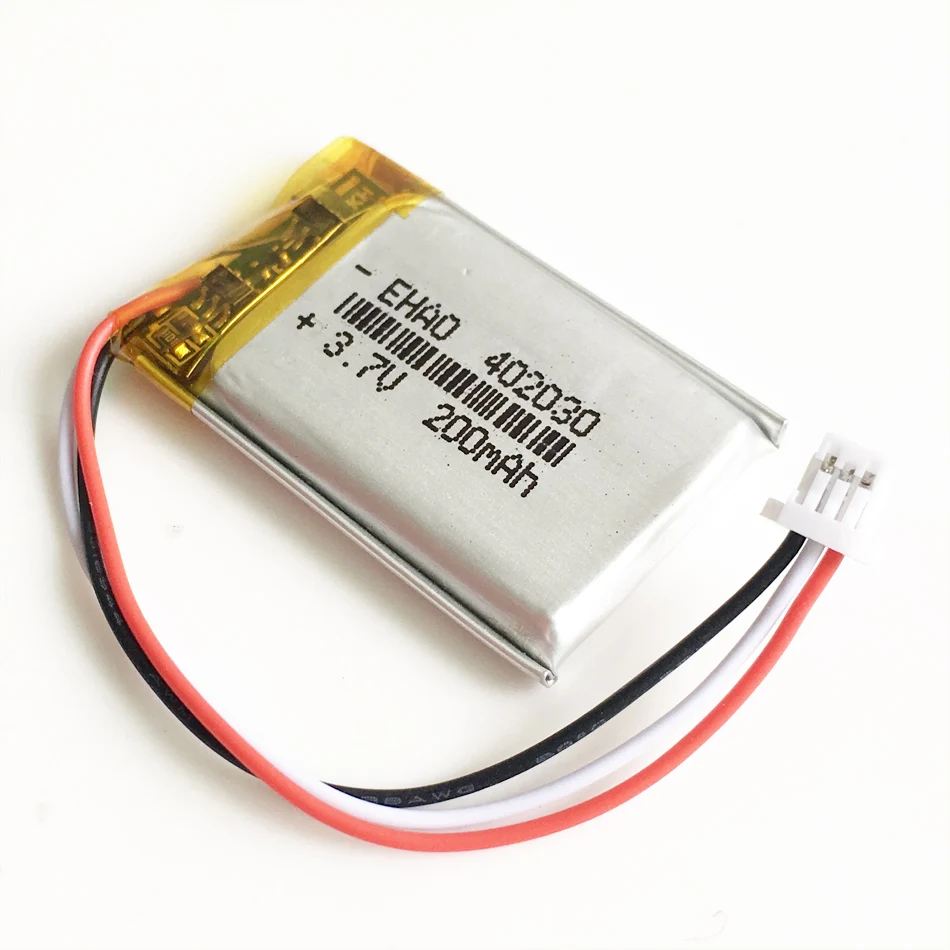 Литий-полимерная аккумуляторная батарея 3,7 в, 200 мАч, 402030 JST, 1,0 мм, 3 контакта, по индивидуальному заказу, CE, FCC, ROHS, MSDS, сертификация качества