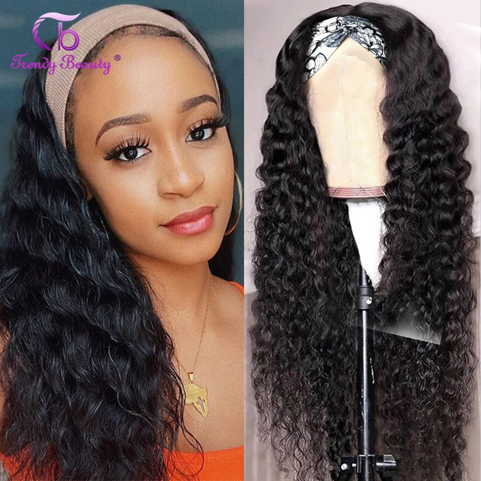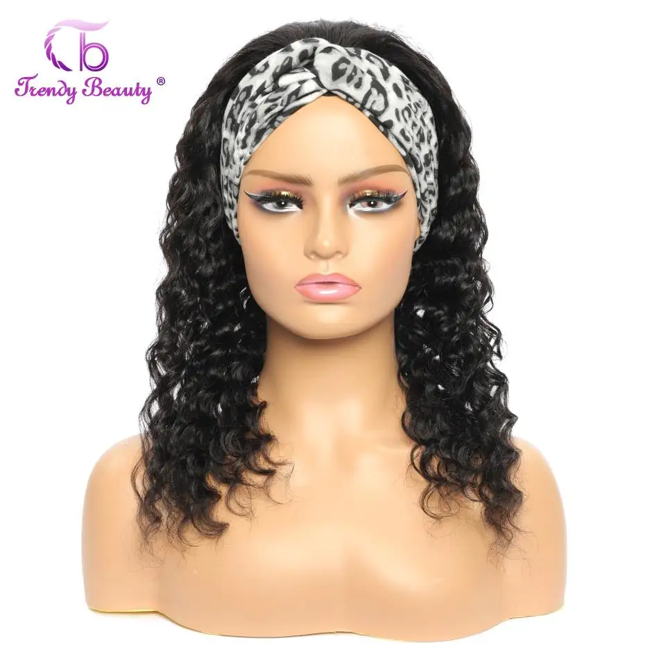 Малайзии глубокая волна парик с головной повязкой человеческие волосы 8 "-26" бесклеевой лента для волос манекен для шарфа парика глубокая волна человеческих волос парик с повязкой на голову для Для женщин