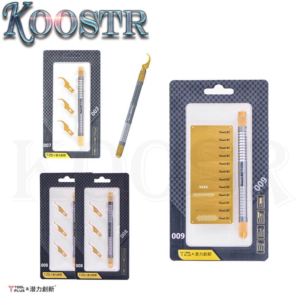 Scimitar moon knife iPhone CPU NAND базовый ремешок для удаления клея инструмент для очистки. Материнская плата мобильного телефона CPU NAND Базовая полоса чип край клей удаление нож. Одна штука ручка и съемный лезвие (007 / 008 /009)