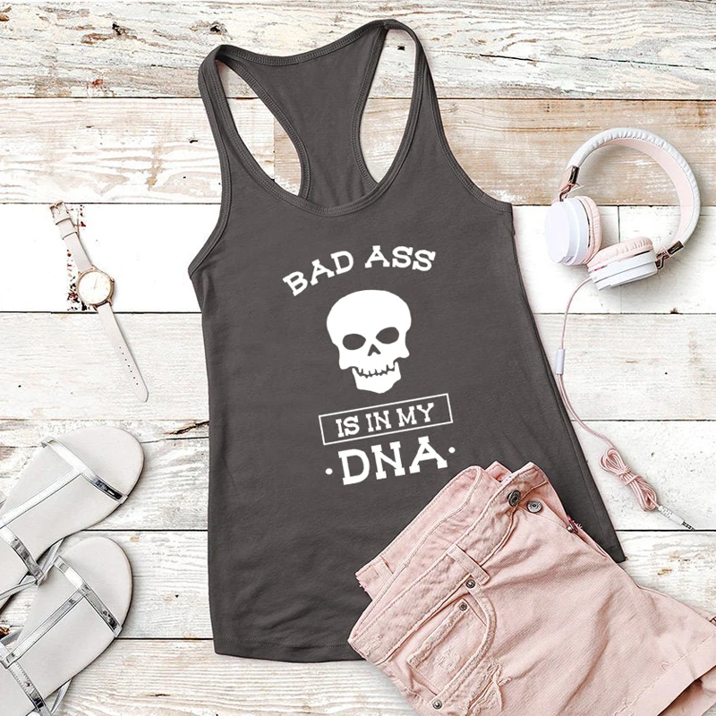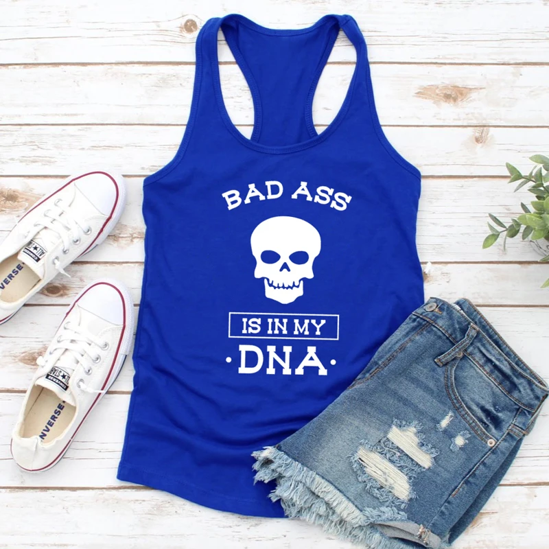 Жилет Bad Ass Is In My DNA майки повседневные женские спортивные забавные майки летние Саркастические без рукавов, для тренажерного зала футболка для тренировок