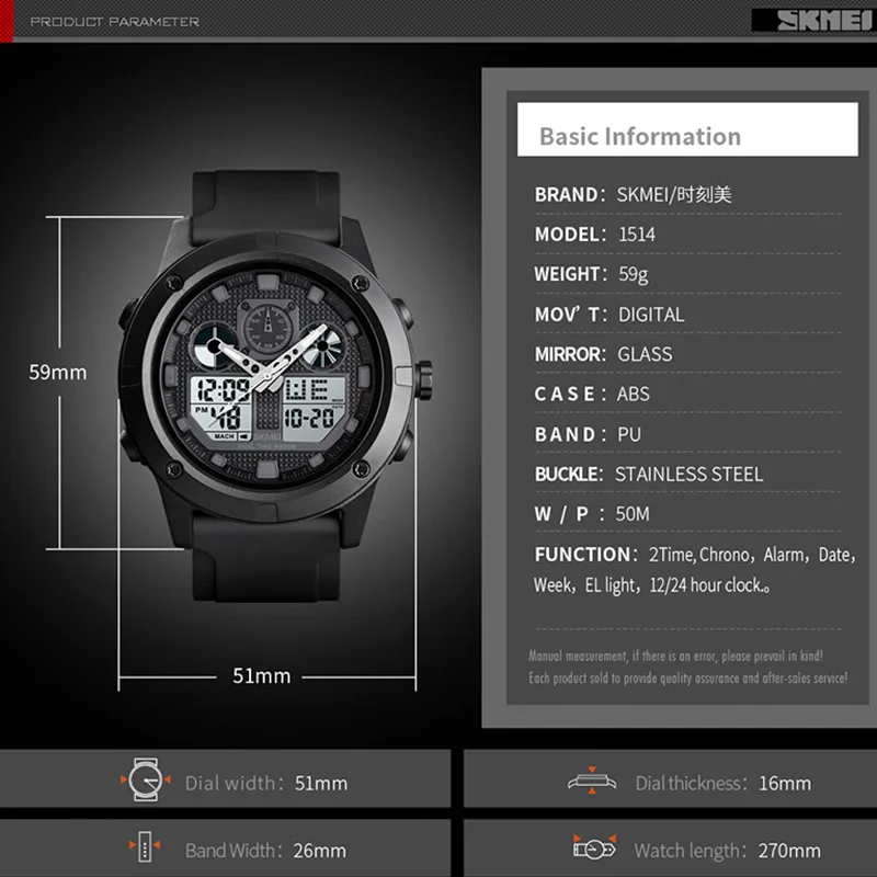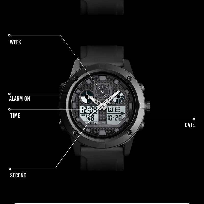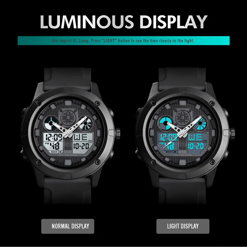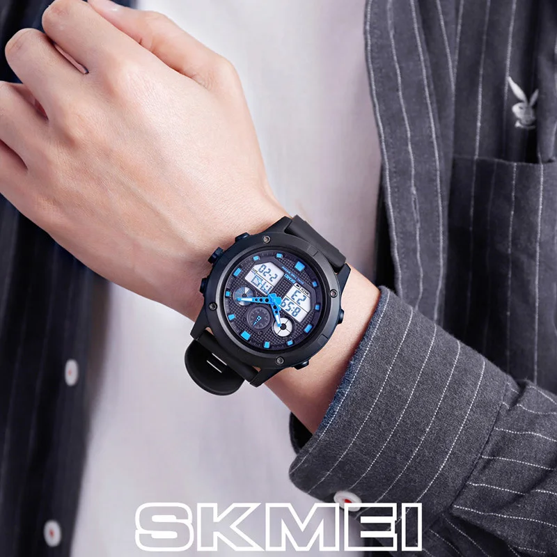 Мужские спортивные часы SKMEI, водонепроницаемые наручные часы с двойным дисплеем 5 бар в стиле милитари, reloj hombre, 2019