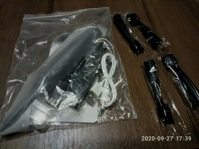 Доставка 14 дней до Челябинска, это не плохо!) всё как в описании, 4 насадки +4. Пластик дешевый, легкий и не много кривой) моторчик сильный, как будто бур стоматологический) заряд полный, посмотрим на сколь хватит. Защита гнезда для зарядки, просто тоненькая резинка в основании, но думаю не критично, если с щёткой заплывы не устраивать) Продавца рекомендую!