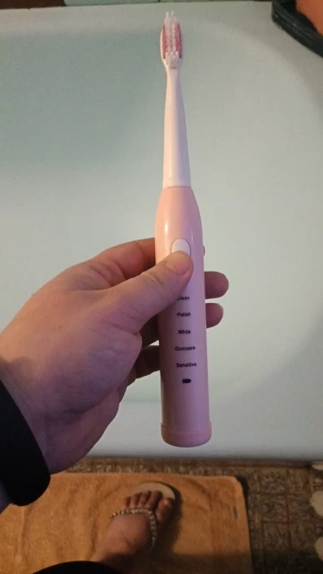 Щетка прикольная, удобная в руке, но есть большое НО для меня, она вибрирует и у меня смешанные чувства, неприятно зубам...то ли щекотно, то ли стоматолога напоминает не пойму, но мне бррр((, так что к заказу рекомендую...соответствует описанию полностью, доставили быстро...дней 8-10, но если ваши зубы чувствительны, то врятли сможете ей пользоваться, я не смогла) хорошо что в комплекте есть еще 3 запасные насадки, можно кому-то отдать))