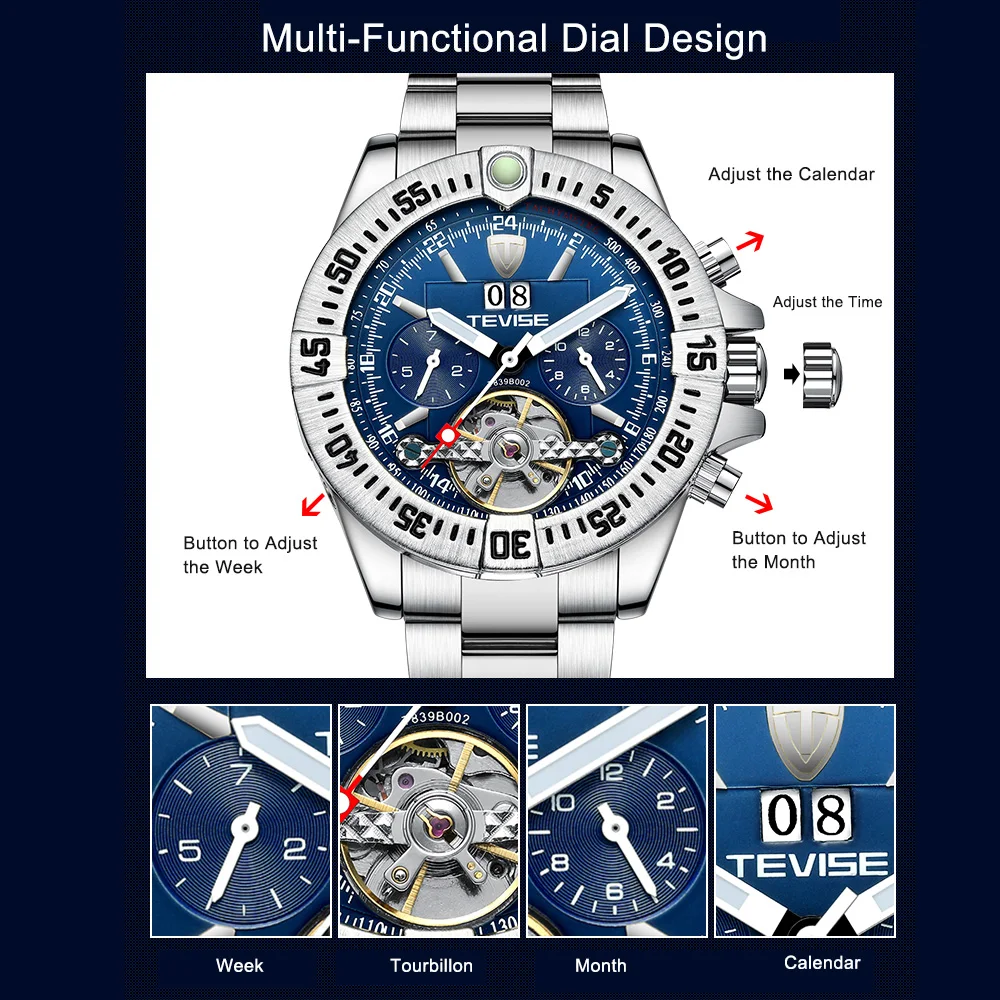 Мужские механические часы TEVISE, мужские часы, лучший бренд, роскошный календарь, светящиеся стрелки, наручные часы, T839B-002 saat 2022
