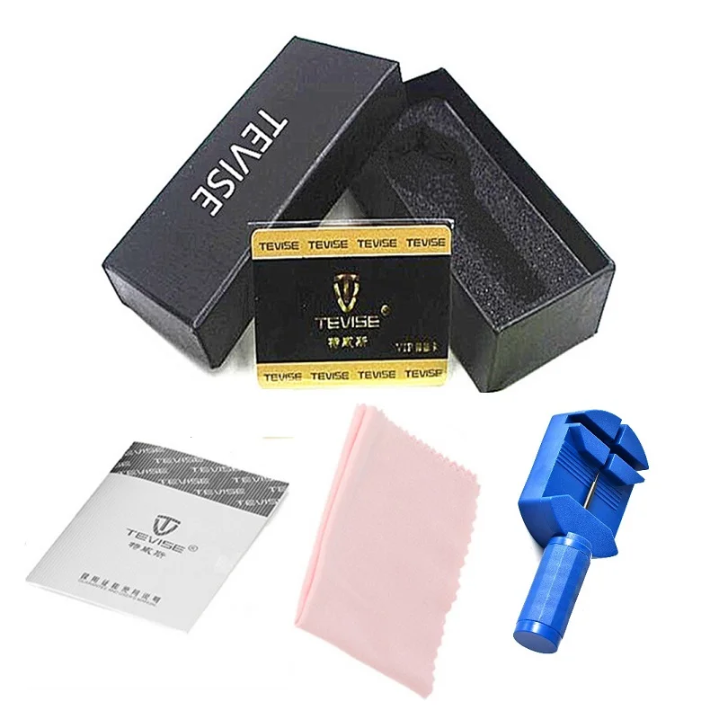 Посылка со списком1 * часы TEVISE;1 * упаковочная коробка;1 * Инструкция;1 * VIP карта;1 * салфетка для чистки часов;