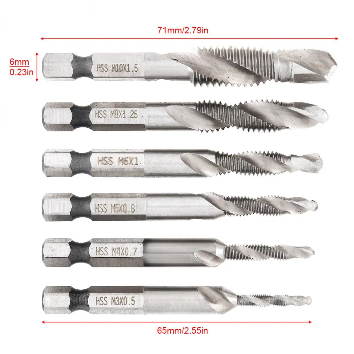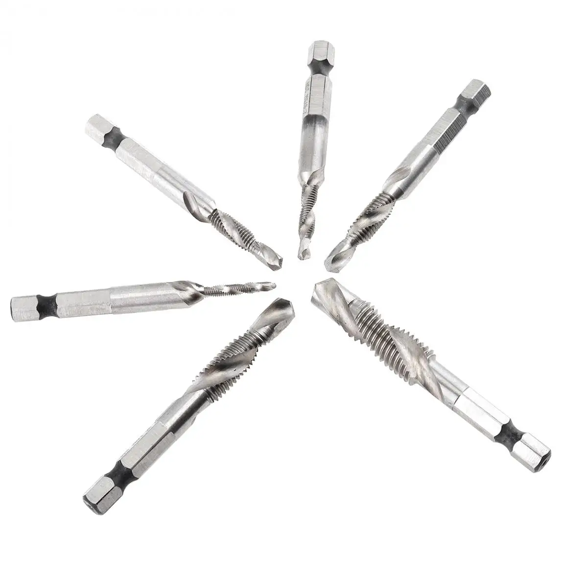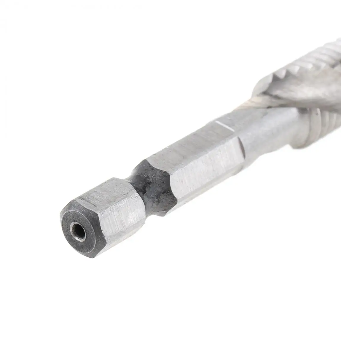 Особенности:-Высокая твердость, устойчивость к коррозии, долговечность.-Подходит для сверления, штамповки, резки мягкого металла, алюминия, железа и т. д.-Быстрая замена составных конусов по принципу бурения.-Одно сверление, один шаг на месте, значительно экономя этапы обработки и затраты времени, улучшая эффективность работы.-Самоцентрирующаяся точка, без вспомогательного центра бурения или центрального бурения.