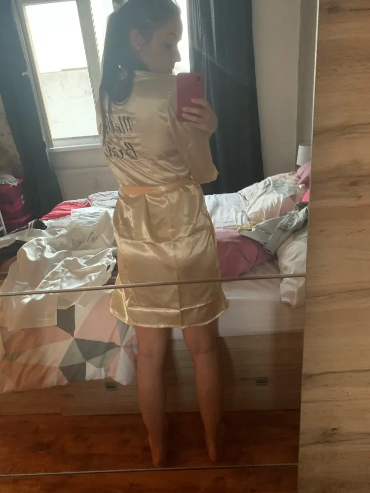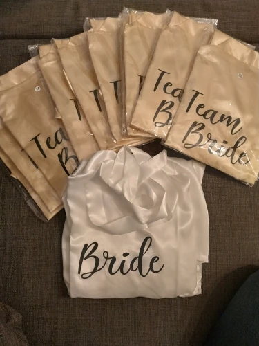 5 звезд! Я заказал L для себя и XL для мамы (обычно я ношу M, а мама обычно носит M-L). Разница только в длине-XL намного длиннее. Я довольно высокий (178 см), поэтому L немного короткий, но все еще носится. Материал приятный, надпись тоже очень хорошая. Я буду заказывать больше для подружек невесты! И доставка тоже была быстрой-она прибыла в Бразилию примерно через 3 недели.