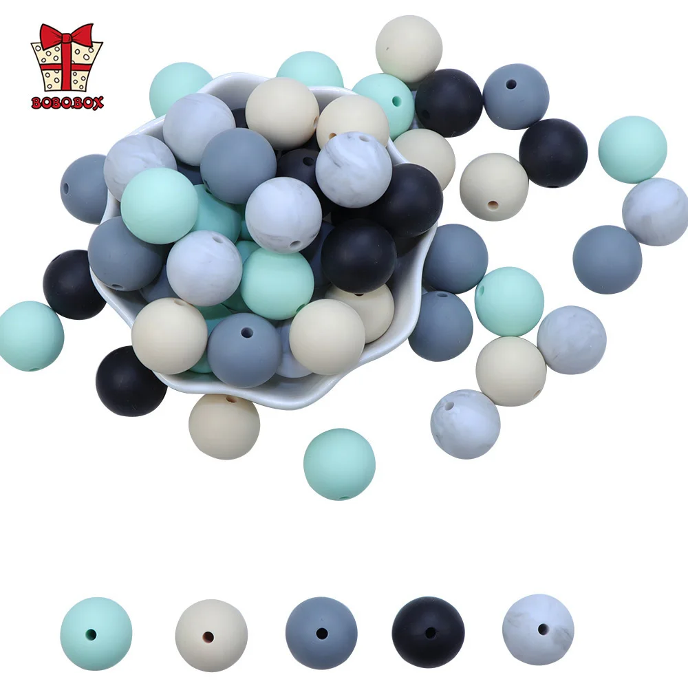 BOBO.BOX, 15 мм, 100 шт, силиконовые бусины, пищевой силикон, Детские Прорезыватели для зубов, для ожерелья, жевания, соска, цепочка, клипсы, бусины, Мягкий силикон