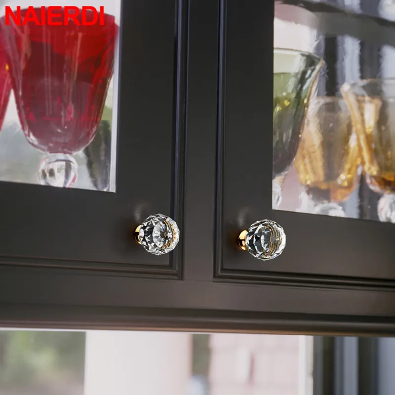 Цветные хрустальные стеклянные ручки для шкафа NAIERDI, хрустальный шар, шкаф ручки для выдвижных ящиков, кухонная мебель, ручка