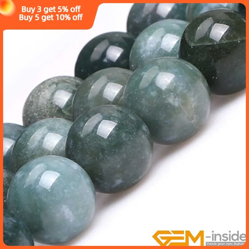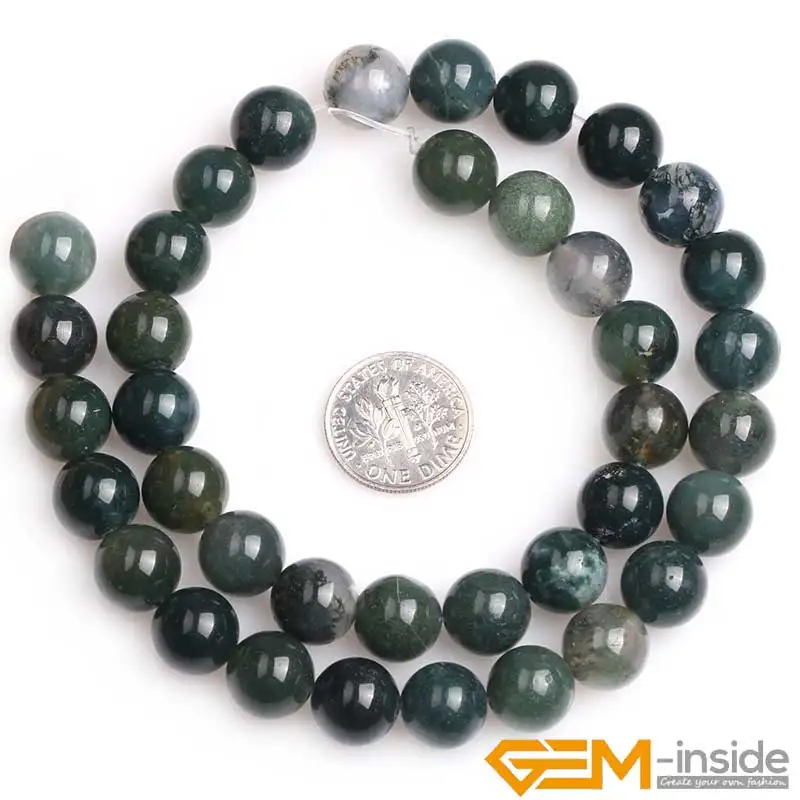Натуральный камень, мох, агат, круглые бусины для изготовления ювел...