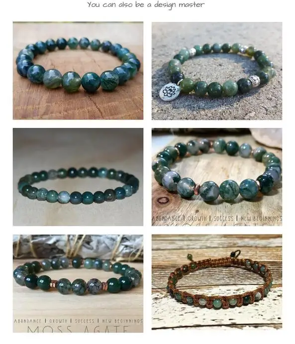 Натуральный зеленый мох дерево Агаты камень Энергетический Браслет ...
