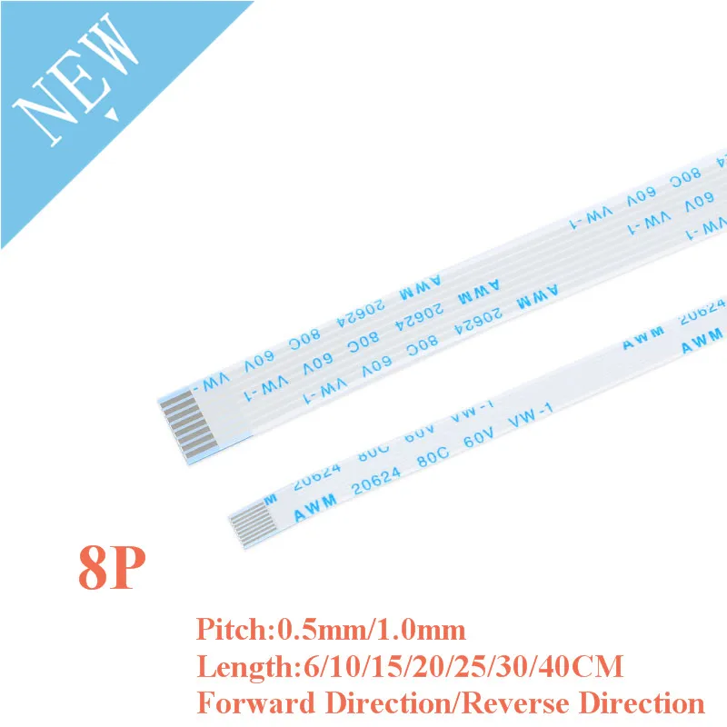 Гибкий плоский кабель FPCFFC, 8 контактов, 0,5 мм1,0 мм, 6101520253040 см, длина в прямом и обратном направлении, 10 шт.