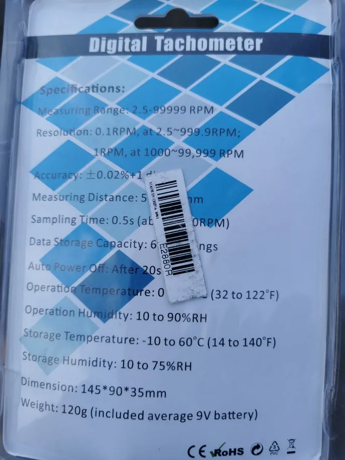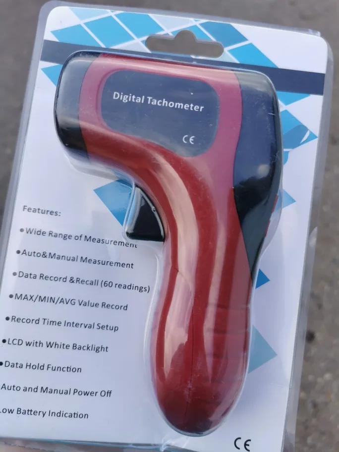 Этот Тахометр является инструментом высокого качества для измерения оборотов в минуту (об/мин) с широким диапазоном измерения и высоким разрешением. Он отличается высокой точностью измерения, быстрым измерением времени и дальним расстоянием обнаружения до 500 мм (20 дюймов) с лазером. Этот Тахометр очень прост в использовании, применяя светоотражающую ленту (входит в посылка) на целевой объект, а затем направляйте на отметку лазерным лучом. Этот Тахометр имеет широкий спектр применений, таких как измерение скорости вращения машины, моторов, колес, токарного станка для работы по металлу или дереву и т. д.Особенности:Бесконтактный Ручной цифровой тахометр со стабильной производительностью.Автоматические и ручные режимы измерения для выбора.Широкий диапазон измерения (2,5 до 99999 оборотов в минуту) и с высоким разрешением.Макс./мин./AVG. Функция записи значений.Функция удержания данных, запись данных и отзыв (60 показаний).ЖК-экран с белой подсветкой, легко читается.Способен измерять на расстоянии от 2-20 дюймов (50-500 мм).Автоматическое и ручное выключение питания.Индикация низкого заряда батареи.Характеристики:Цвет: синий/красный(Опционально)Материал: АБС-пластикДиапазон измерения: 2,5-99999 ОБ/минРазрешение: 0,1 оборотов в минуту при 2,5 ~ 999,9 ОБ/мин (1 шт.), оборотов в минуту при 1000 ~ 99999 об/минТочность: ± 0.02% + 1 цифраРасстояние измерения: 50 ~ 500 мм/2 ~ 20 дюймовВремя выборки: 0.5s (выше 120 об/мин)Объем хранения данных: 60 показанийАвтоматическое выключение: после 20sРабочая температура: от 0 до 50 ° (от 32 до 122 °)Рабочая влажность: от 10 до 90% относительной влажностиТемпература хранения: от-10 до 60 ° (от 14 до 140 °)Влажность хранения: от 10 до 75% относительной влажностиПитание: 1*9V 6F22 батарея (не входит в комплект)Размер изделия: 145*90*35 мм/5,7*3,54 * 1.4inВес изделия: 79 г/2,81 унцийПосылка Размеры: 20*14*4 см/7,87*5,5 * 1.57inВес посылка: 134 г/4,73 унцийПримечание:1. Перед измерением необходимо наклеить светоотражающую ленту на целевой объект.2. Не направляйте лазерный луч непосредственно на глаза; Рекомендуется безопасные очки.3. Не используйте его вблизи взрывоопасных газов или в других взрывоопасных областях.Посылка:1 * цифровой тахометр1 * светоотражающая лента1 * Руководство пользователя (на английском языке)