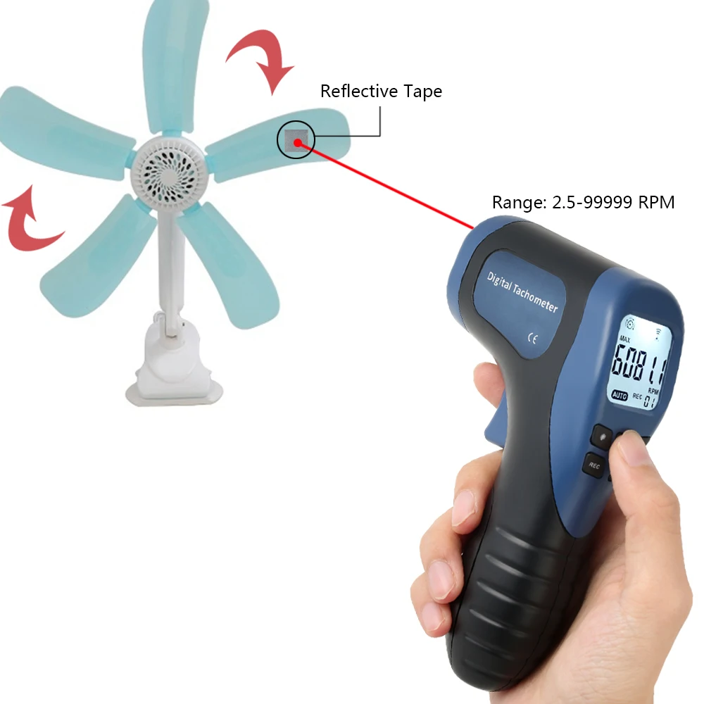 Ручной Цифровой Фото Тахометр ЖК-измеритель оборотов лазерный Бесконтактный тач диапазон 2,5-99999 ОБ/мин измеритель скорости двигателя + 1 шт. светоотражающая лента