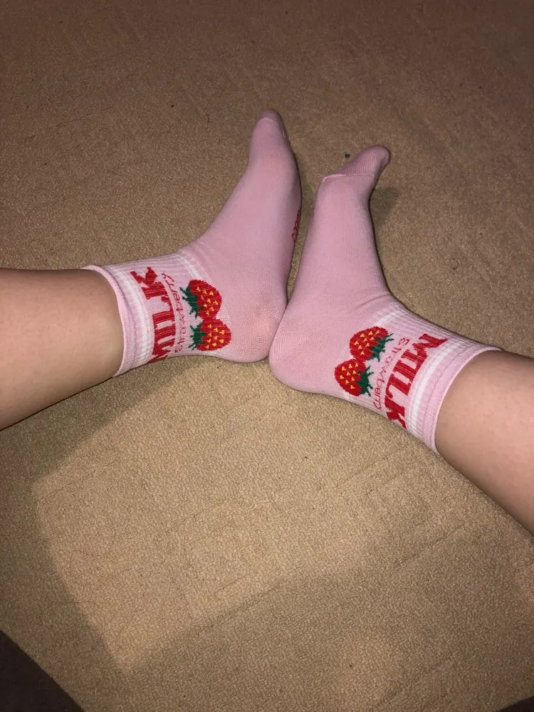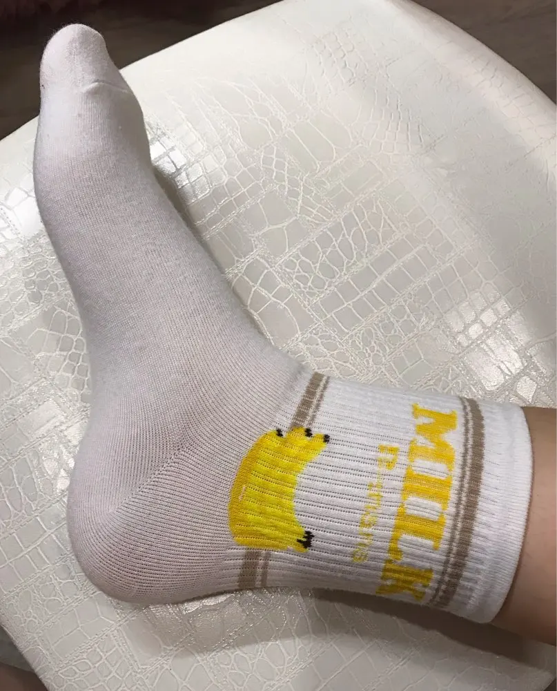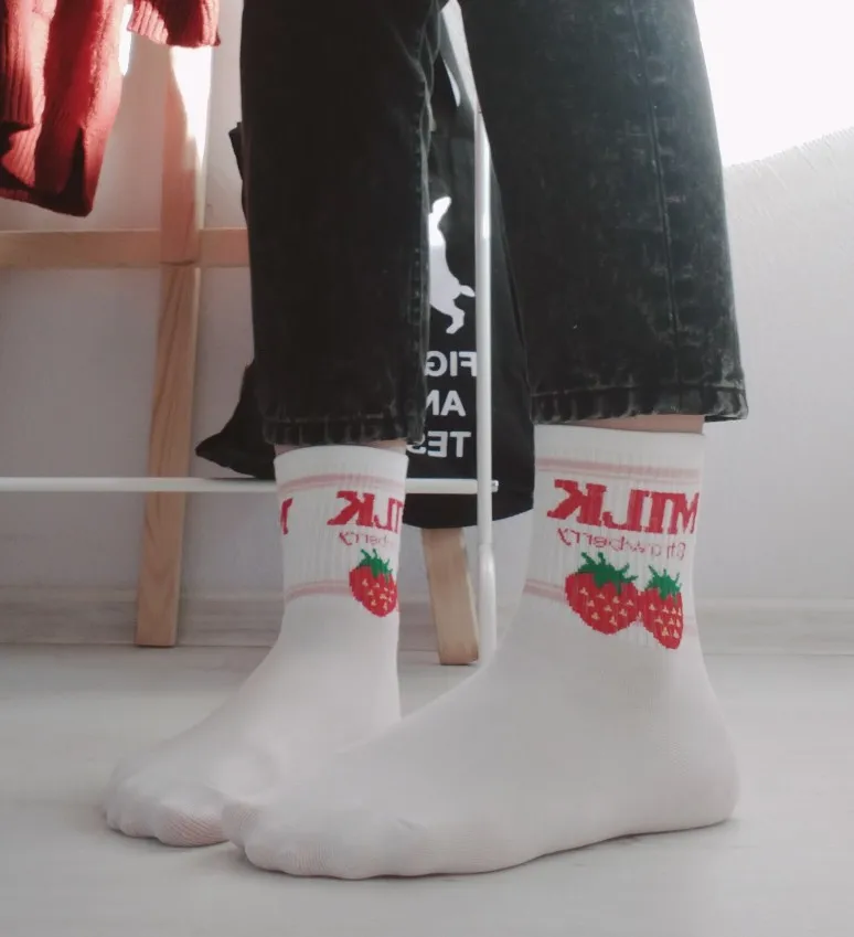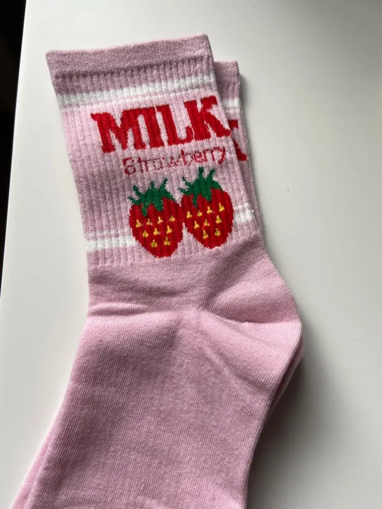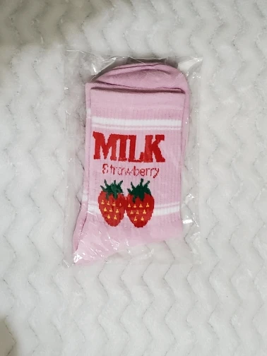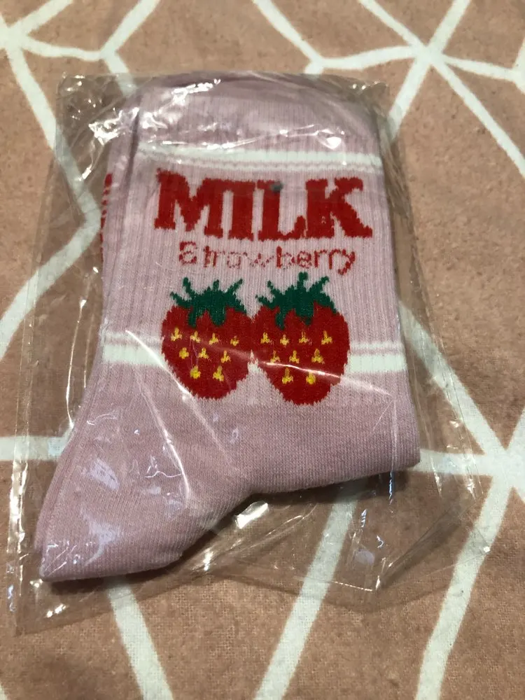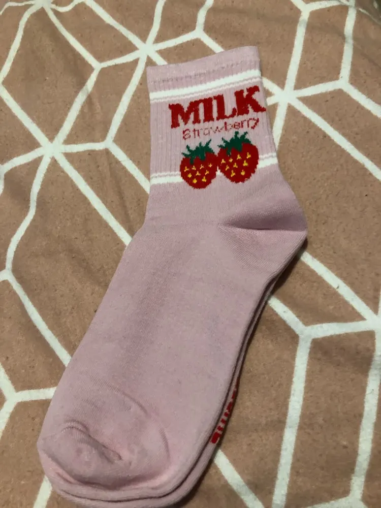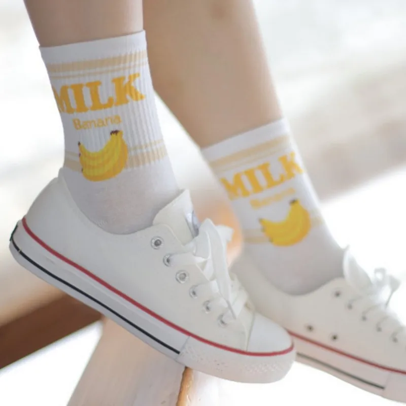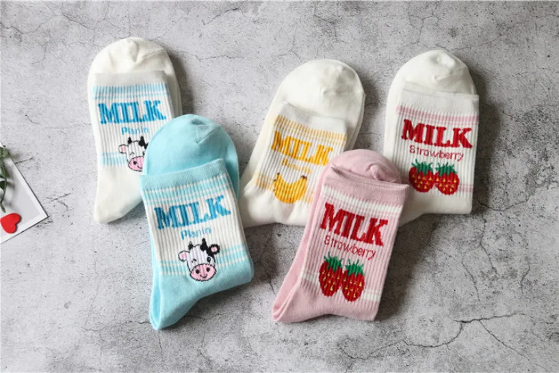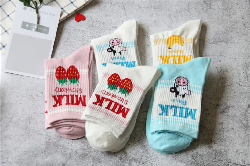Носки женские, хлопковые, розовые, с принтом в виде коровы, клубники, банана