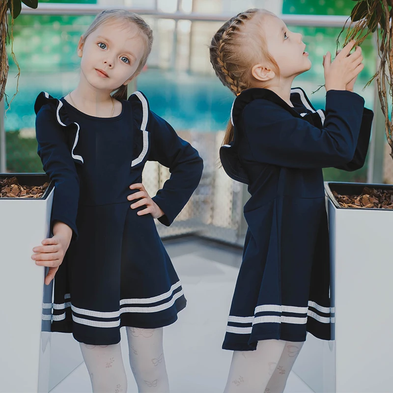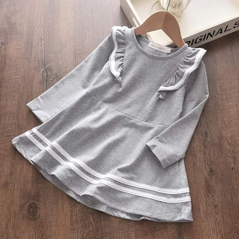 Bear Leaderплатья для девочек новое весеннее платье для маленьких девочек Полосатое платье принцессы с длинными рукавами и бантом для девочек, детская одежда Vestidos