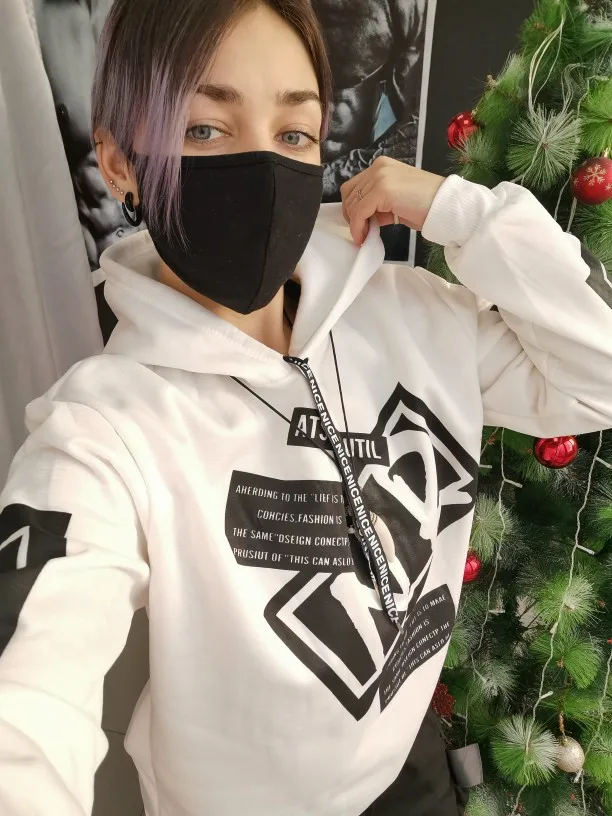 Заказывала кофту уже второй раз, Размер л, белая была намного менее по размеру, чем чёрная ткань отличается более эластичная чем белая, качество пошиво хорошо, в Украину идёт очень быстро около двух недель первая пришла через новую почту, вторая пришла через укр. Почту, стиль классный, смотрится очень круто