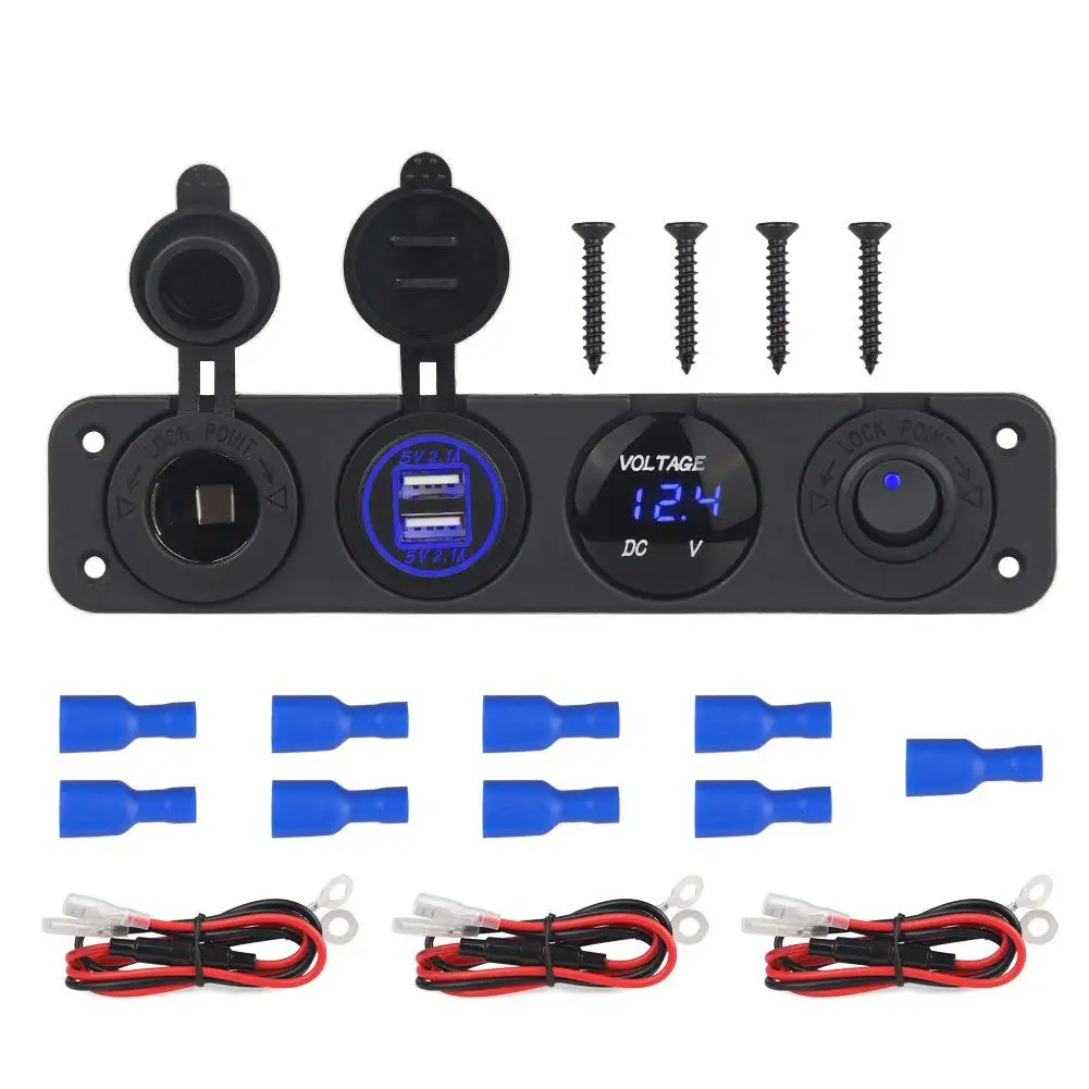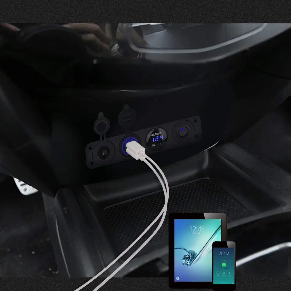 Комплект многофункциональной панели переключателя: в комплекте 2,1 а/5 В и 2,1 а/5 В, двойное зарядное устройство usb, цифровой вольтметр, гнездо прикуривателя и кнопка включения и выключения Материал: изготовлен из инженерного АБС-пластика, а вся пластина изготовлена из нейлона Защита цепи вывода, защита от перегрузки и защита от обратной полярности Погружение в воду не рекомендуется Использование: для автомобилей, грузовиков, лодок, морских судов, квадроциклов, автофургонов, прицепов, яхт, внедорожников и т. д. Подходит для системной панели 12 В и 24 В. Предварительно подключена Простая установка: поместите ее в отверстие переключателя, закрепите винтами, и тогда вы можете начать использовать.Описание зарядное устройство с двумя USB-портами: