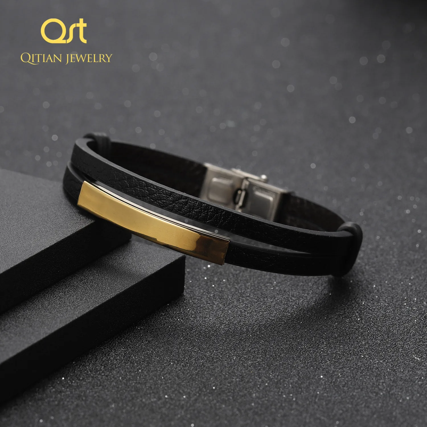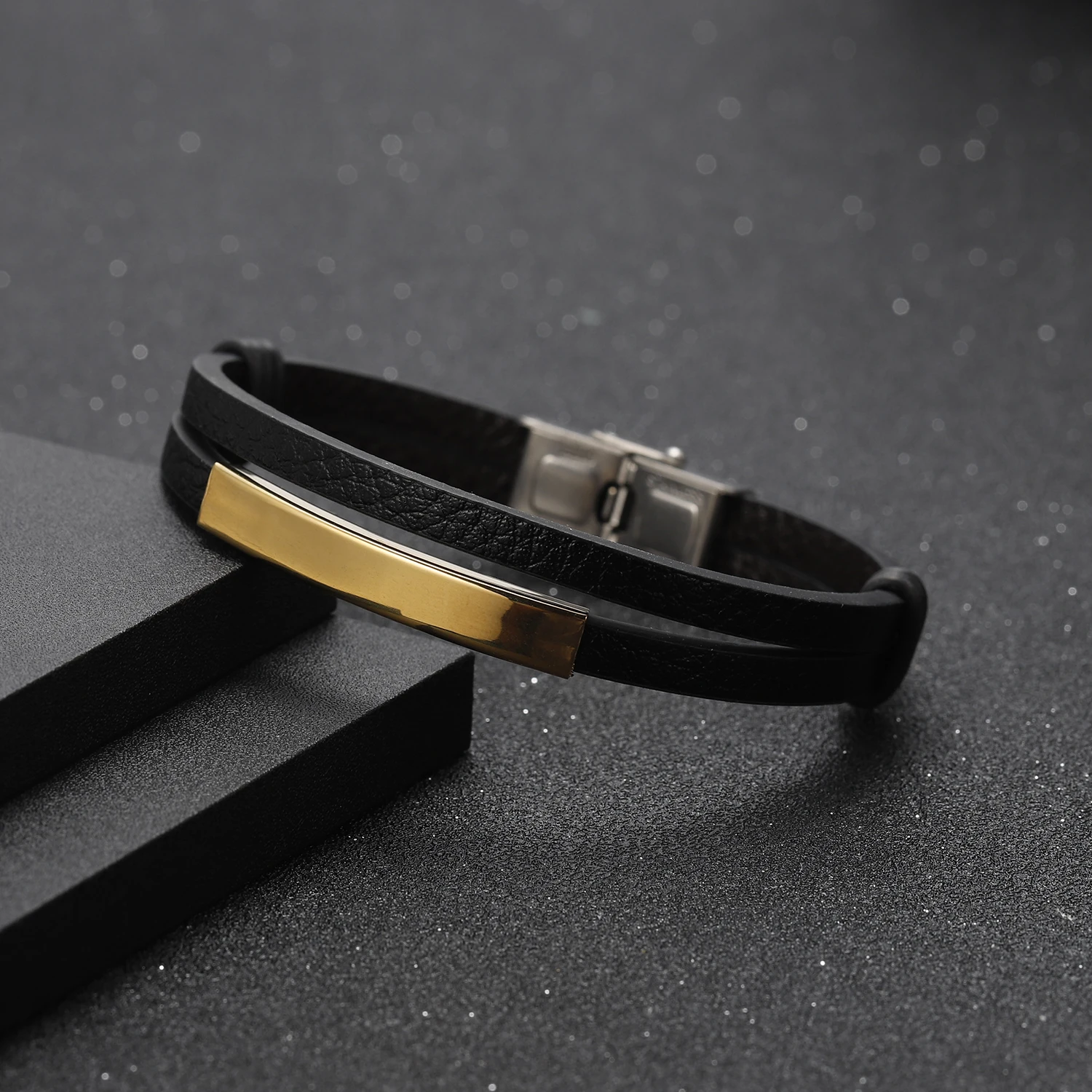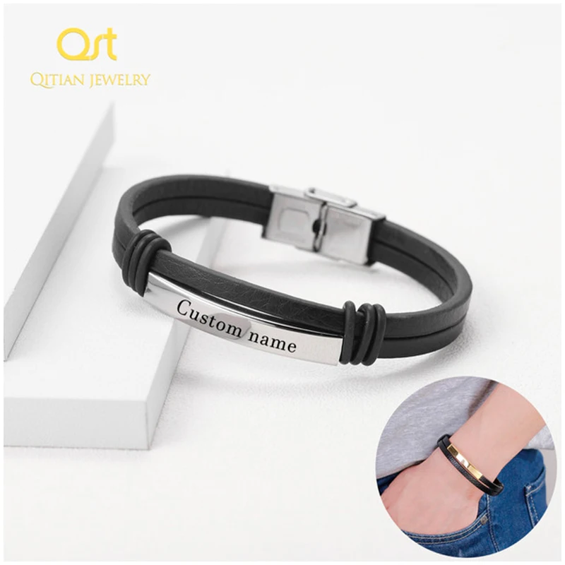 Персонализированные многослойные кожаные браслеты для мужчин и женщин, повседневные браслеты из нержавеющей стали с гравировкой на заказ для подарка