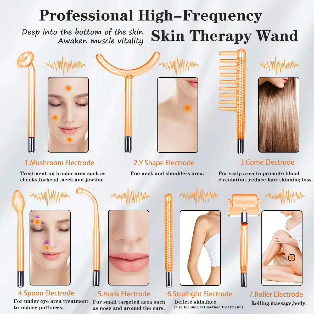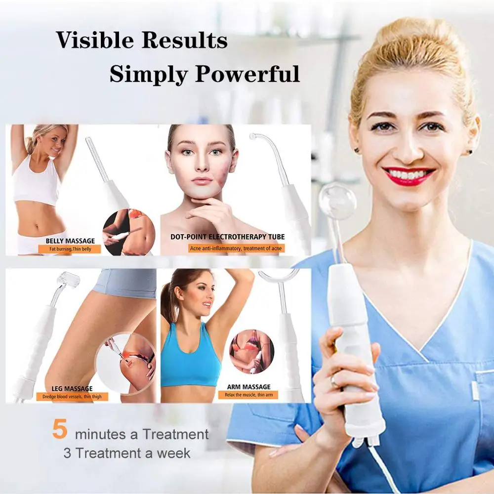 Высокочастотная элетротерапия является важным инструментом красоты. Это через стеклянную электродную трубку для получения высокочастотного тока и нанесения на лицо или тело, таким образом, достигает результата обработки.