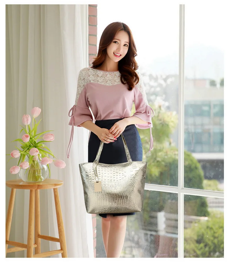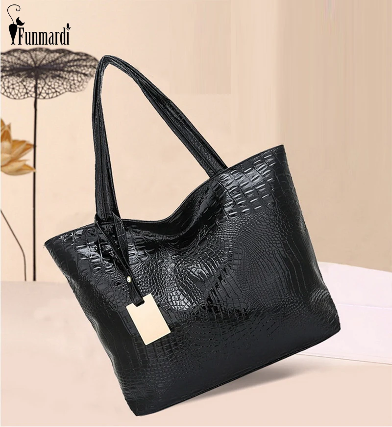 Модная Крокодил сумки на плечо сумка FUNMARDI для женщин, вместительная сумка из мягкой искусственной кожи, Повседневная Сумка-тоут, WLHB1977