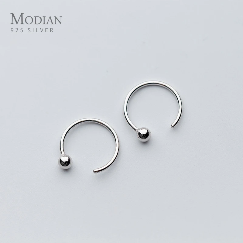 Женские серьги-кольца MODIAN из настоящего серебра 2021 пробы с круглыми бусинами, милые маленькие ювелирные украшения из серебра 925 пробы для подарка