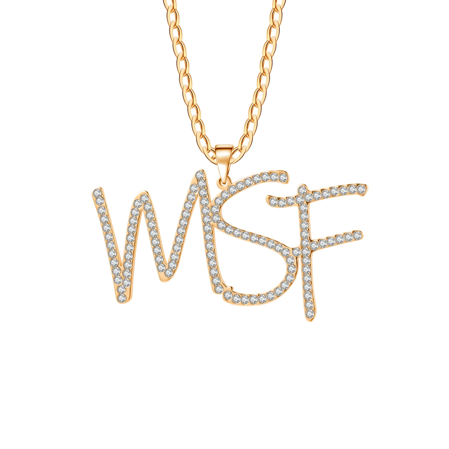 Индивидуальное ожерелье со сверкающим именем, курсивные инициальные буквы, ожерелье с именной табличкой из циркония, кубинская цепь в стиле хиппопа, ювелирные изделия для мужчин и женщин