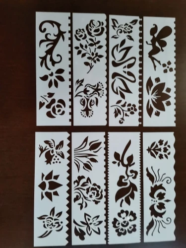 Подходит для пигмента, чернильной подушечки, распыления, ручной росписи, ткани, стены, мебели, украшения. Различные рисунки трафаретов, соответствуют вашим основным потребностям в живописи. Материал: Изготовлен из прочного пластика, многоразового использования и прост в эксплуатации. Не содержит бисфенола А. Цвет: как на фото Размер: 5,5x18,3 см Преобразование: 1 см = 0,39 дюйма