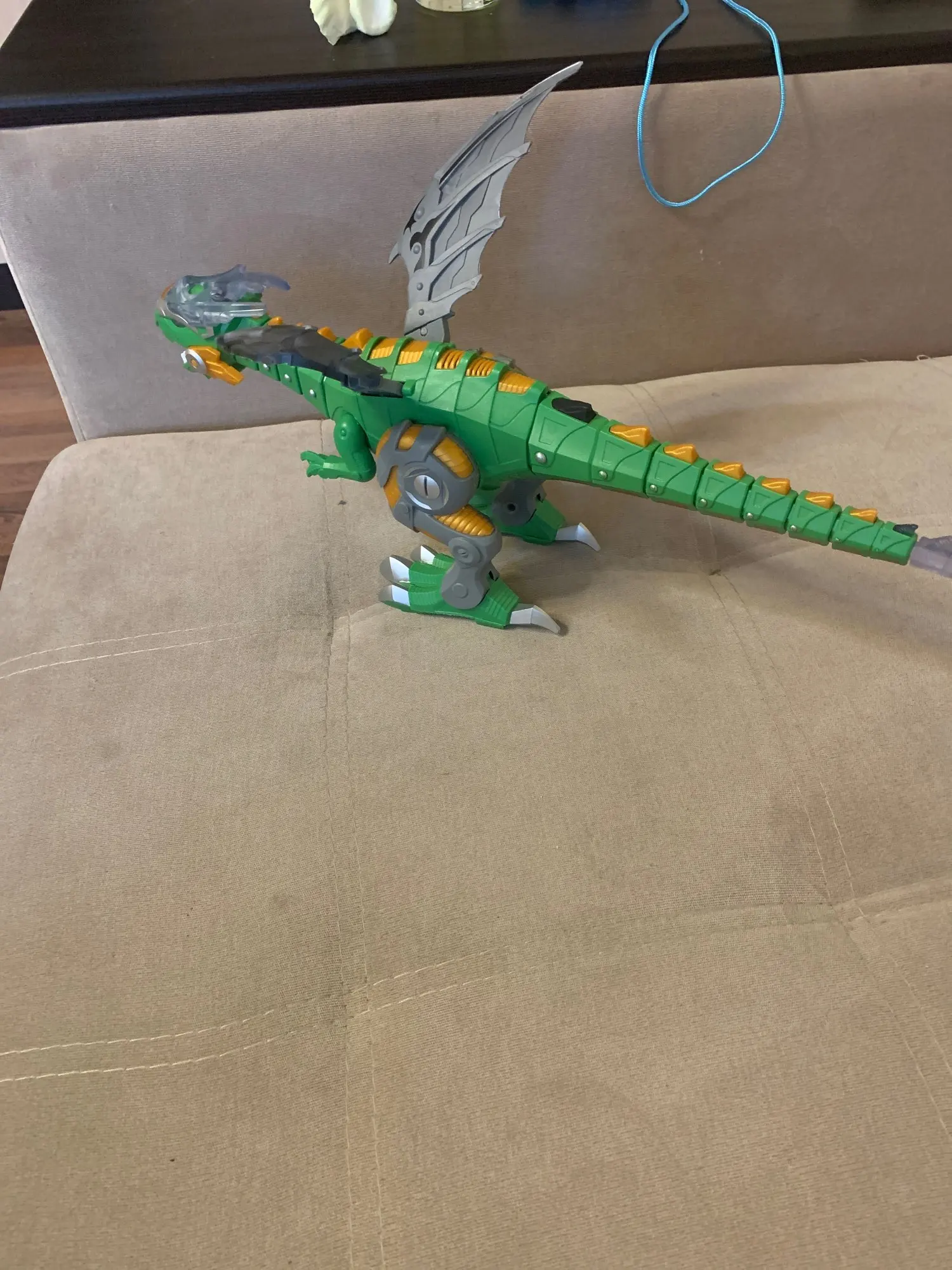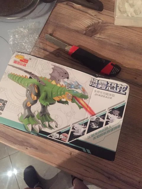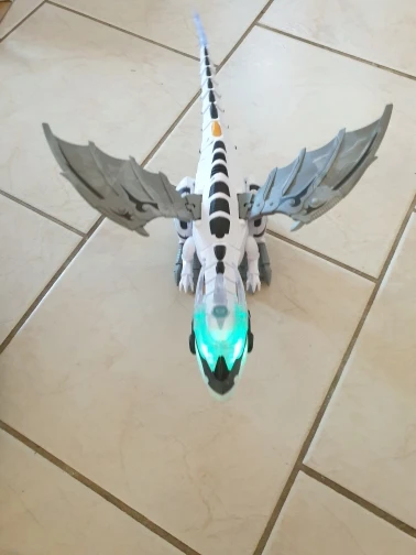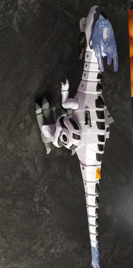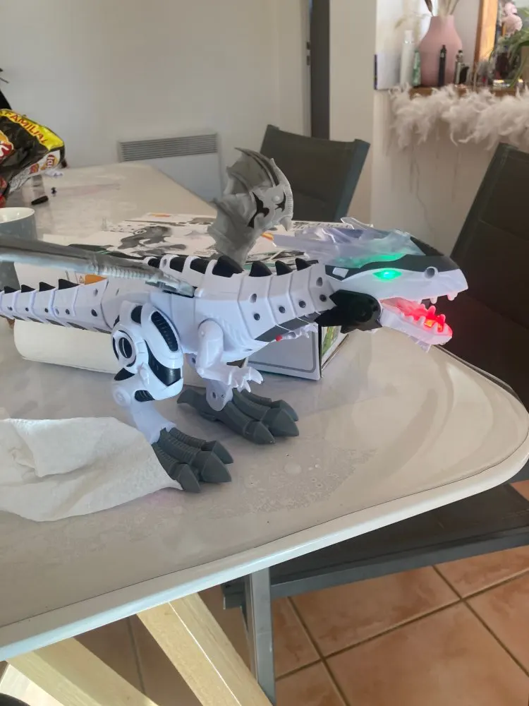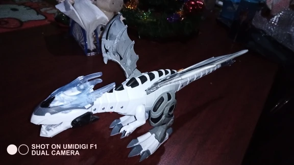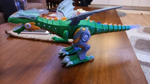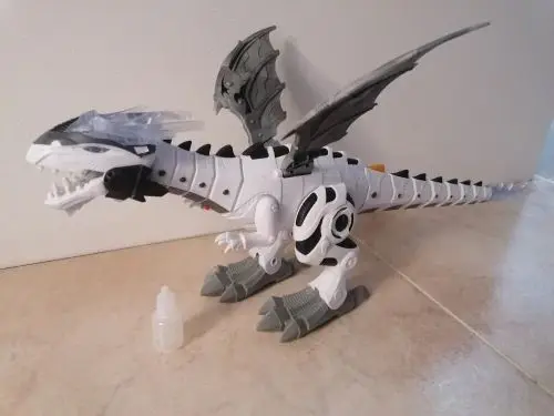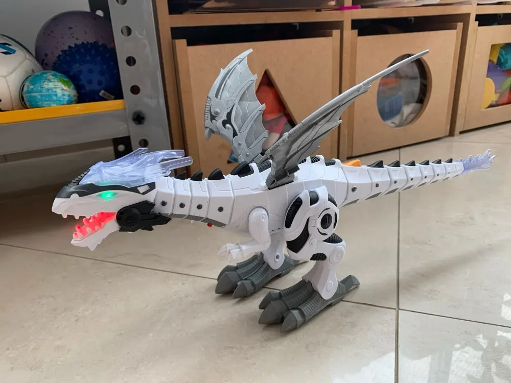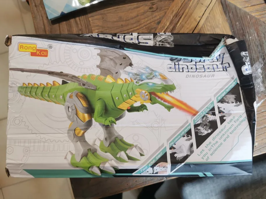 Робот потрясающий! Качественный пластик, ходит рычит кричит, в голову зашиваете водичку и дракон извергает паром подсвечивая это все лазером. Ребёнок в восторге!