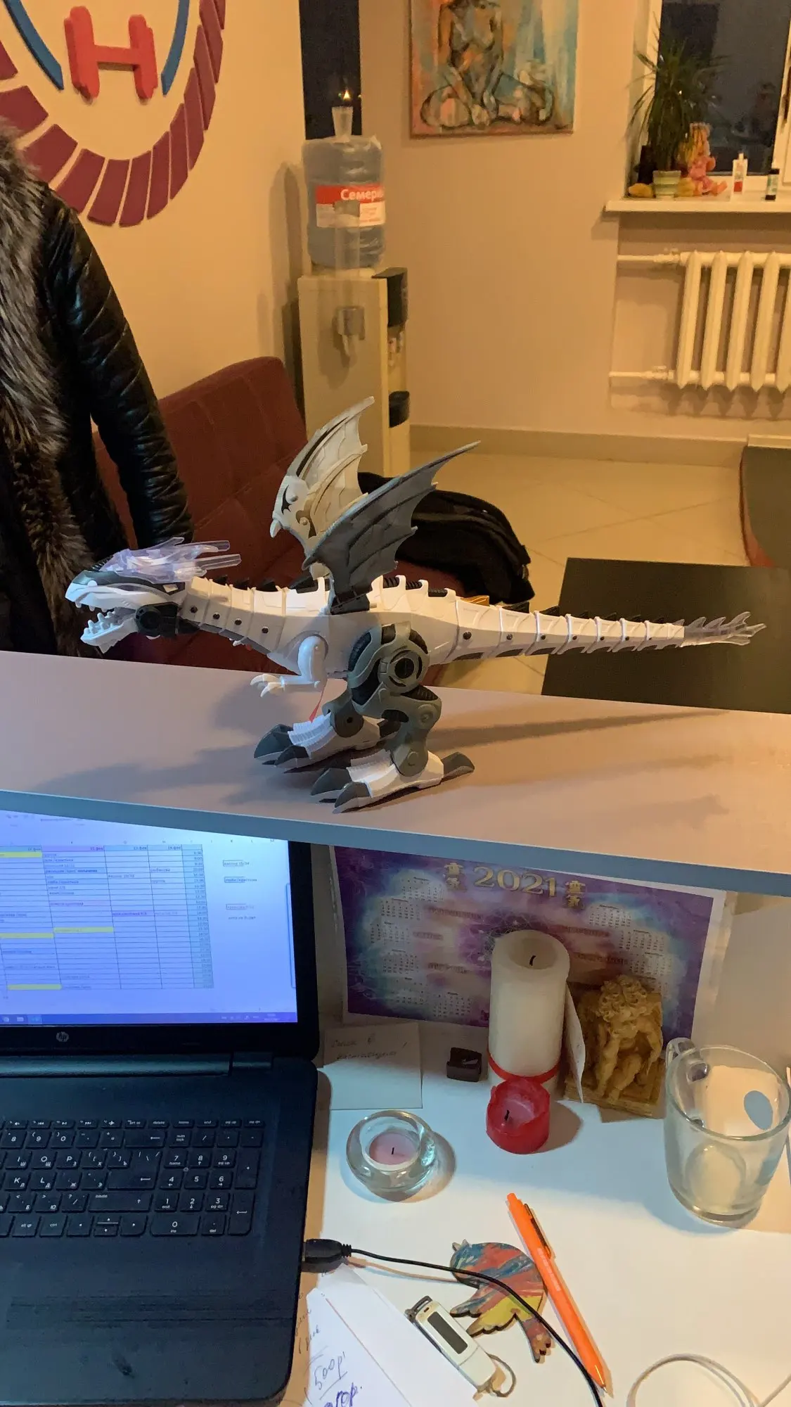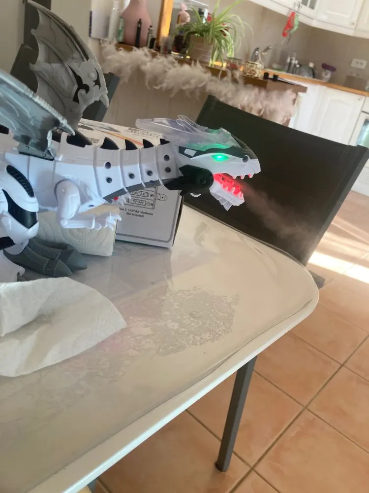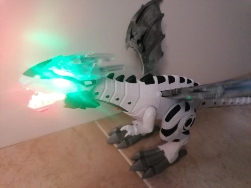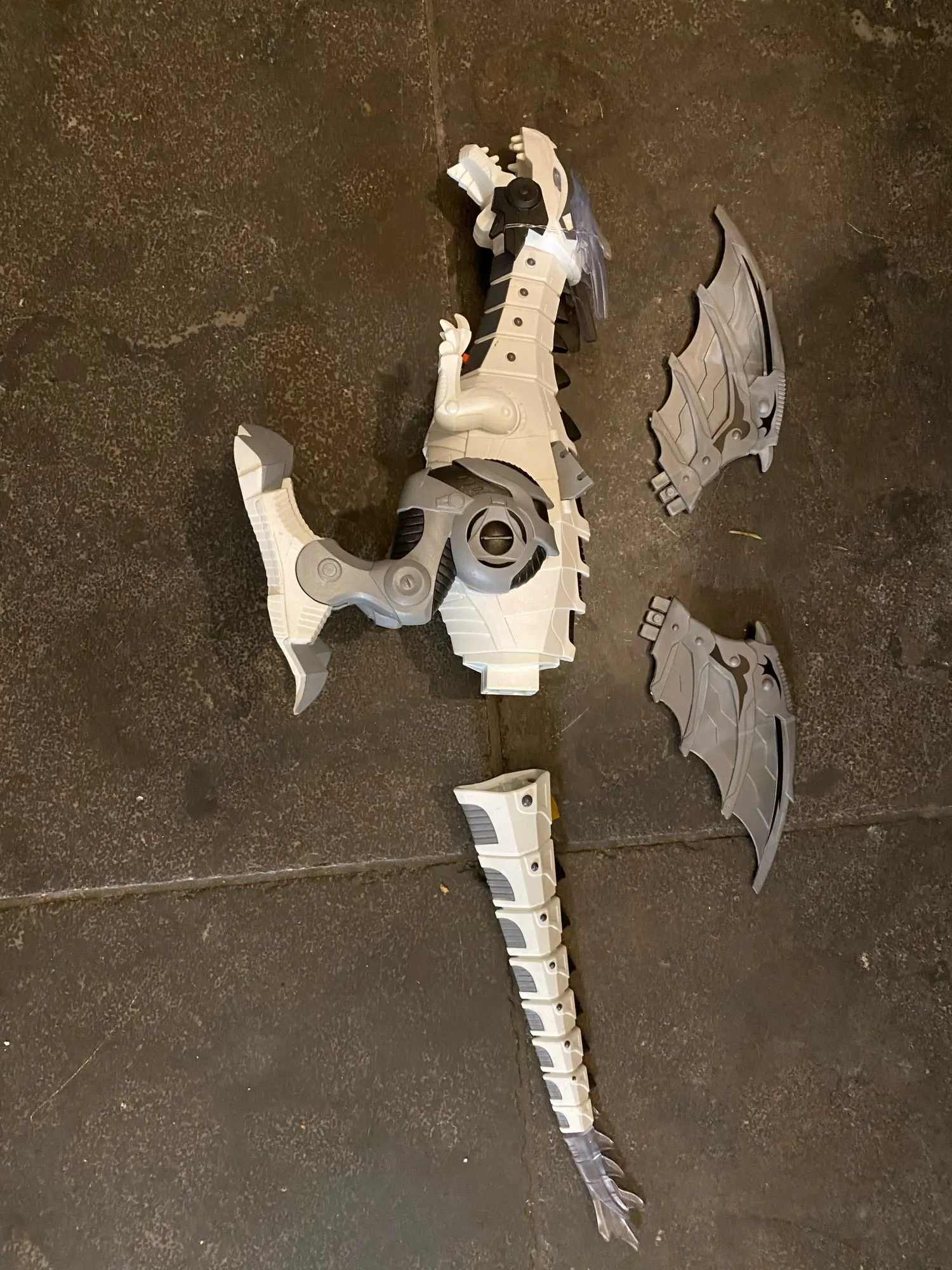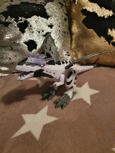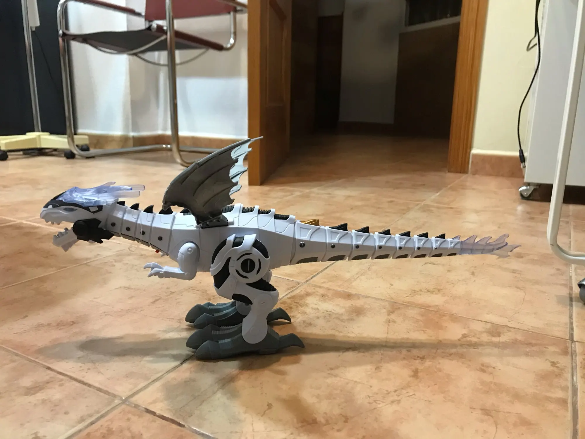 Робот потрясающий! Качественный пластик, ходит рычит кричит, в голову зашиваете водичку и дракон извергает паром подсвечивая это все лазером. Ребёнок в восторге!