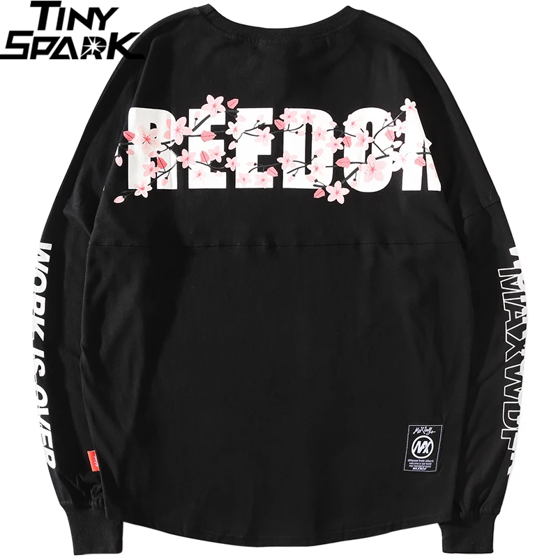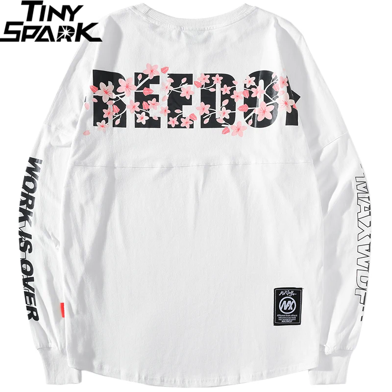 Толстовка в стиле Харадзюку, свободный свитер с изображением сакуры в стиле хип-хоп, уличная одежда для мужчин, Толстовка Оверсайз в японском стиле, Длинная тонкая Толстовка 2019