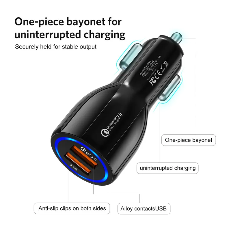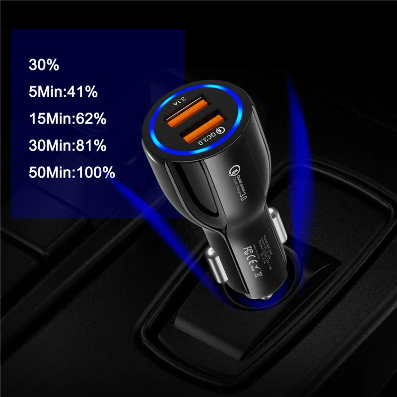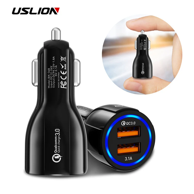 Автомобильное зарядное устройство с двумя USB-портами, быстрая зарядка 3,0 Для Xiaomi 9 Huawei P30 Pro для iPhone XS 8 Samsung, адаптер, зарядное устройство для телефона
