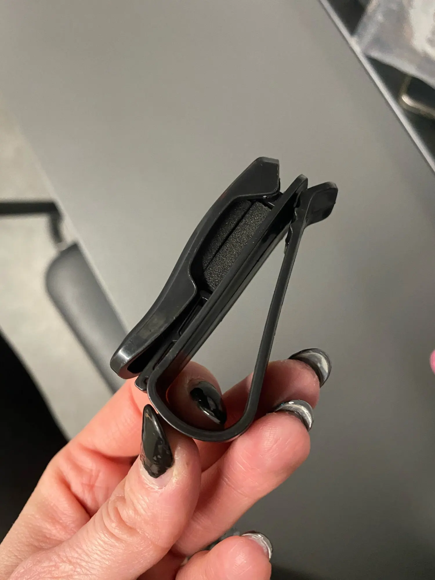 Цвет: черный Размер: 7 см * 2,5 см Материал: АБС-пластик Состав: 1 шт. Автомобильный держатель для очков