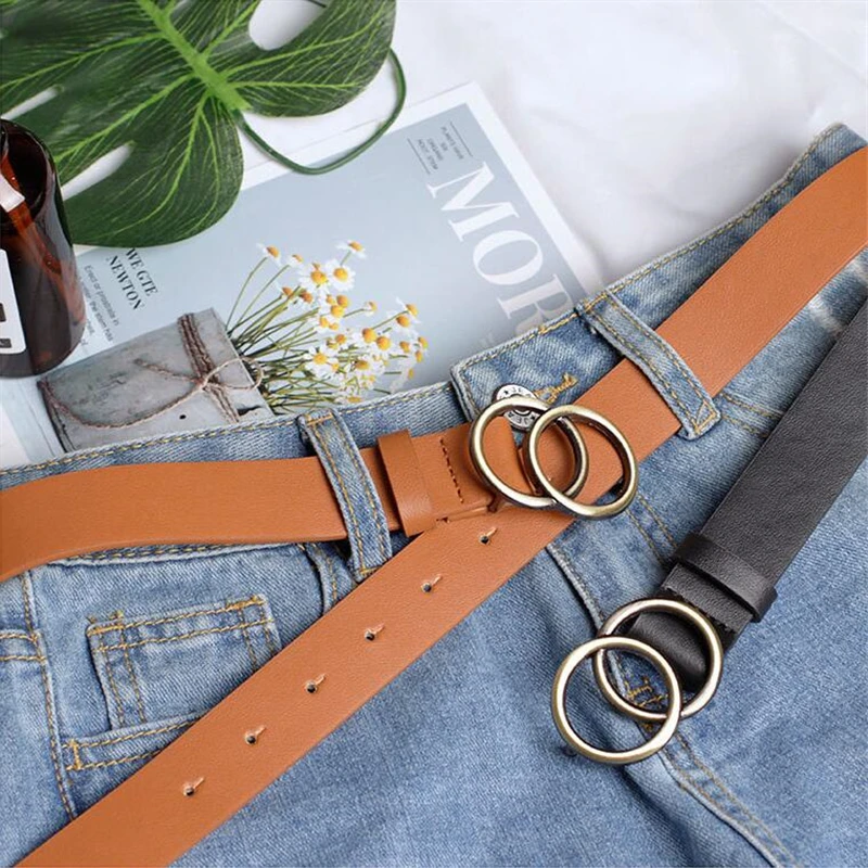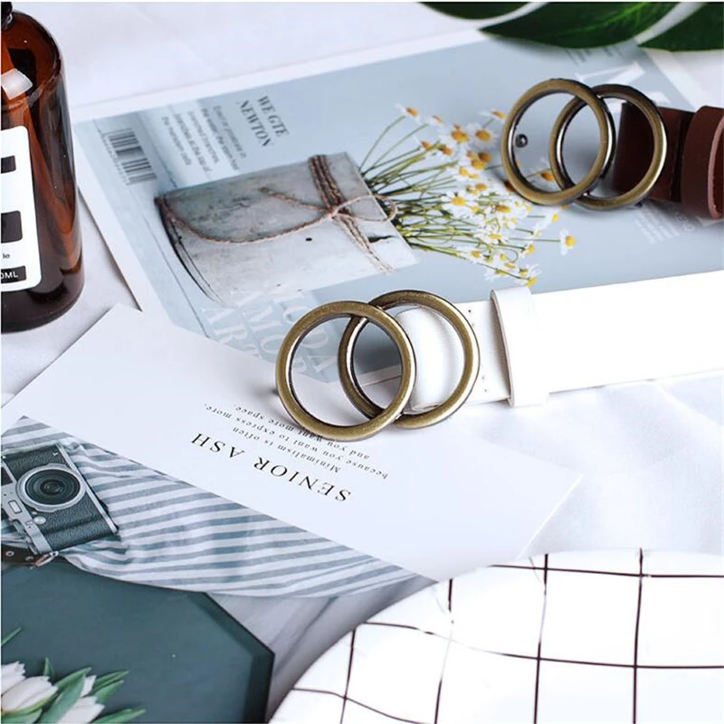 Ремень женский винтажный с двойной кольцевой пряжкой, универсальный, для джинсов, для студентов