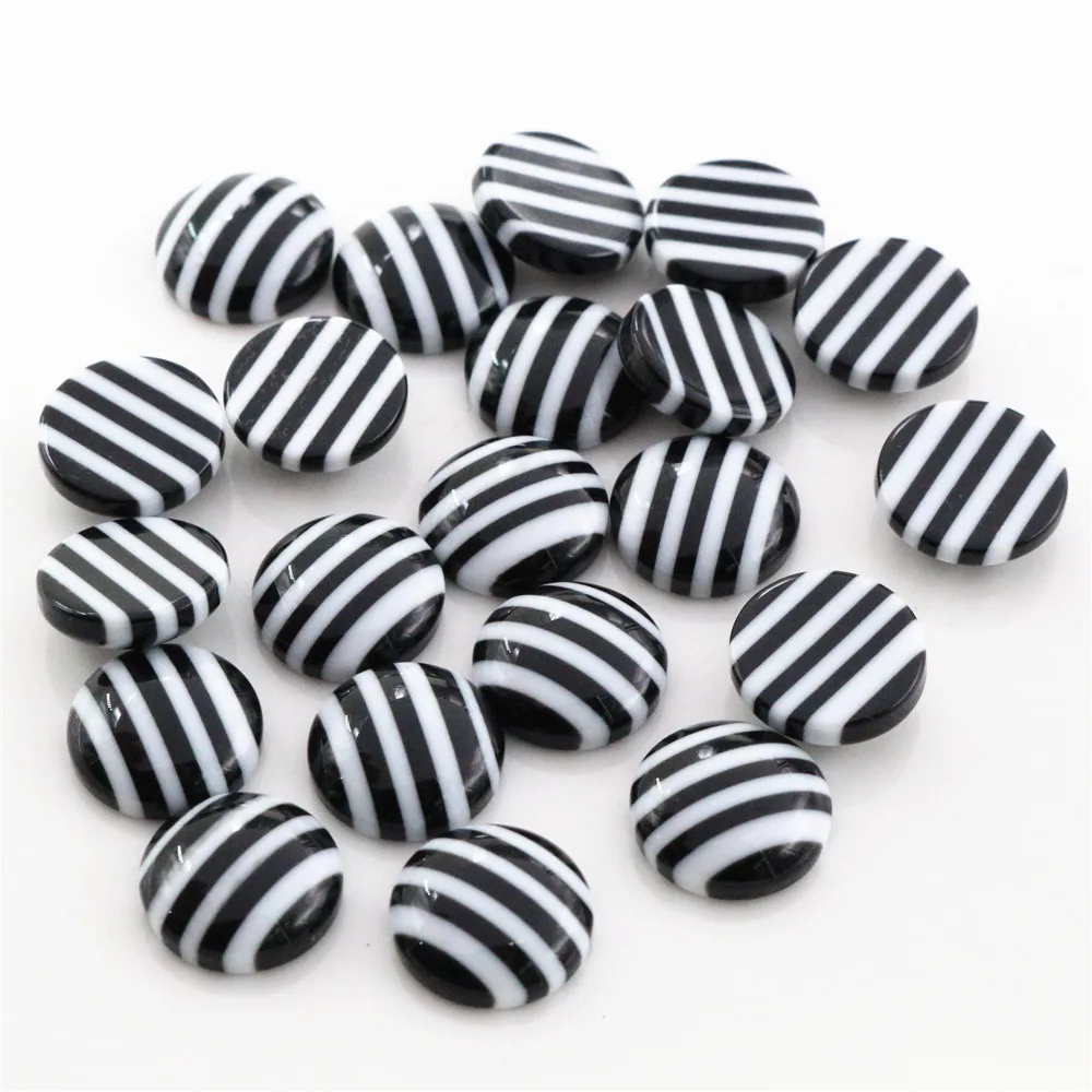 Новая мода 40 шт 12 мм черно-белые цвета в полоску стильные плоские задние кабошоны из смолы подходят 12 мм Камея База Cabochons-W3-19