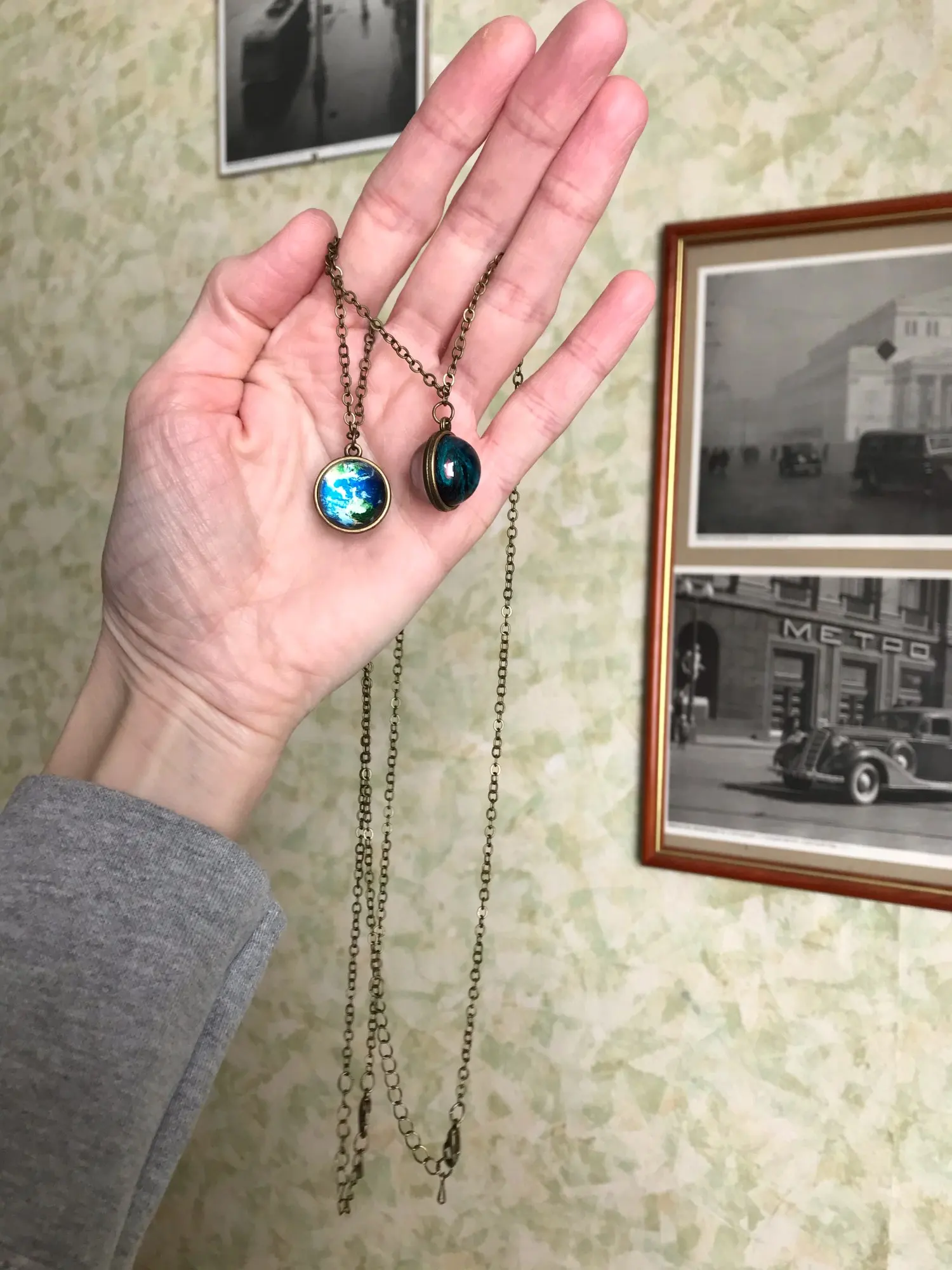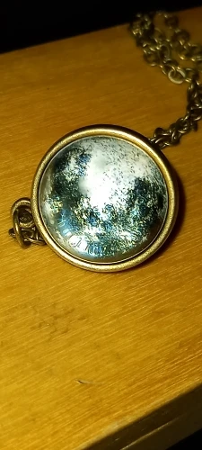 Красивый кулон. Смотрится отлично.) Пришел примерно за месяц. Я выбрала луну(ну, что немного темнее). Всё супер, спасибо большое!❤️