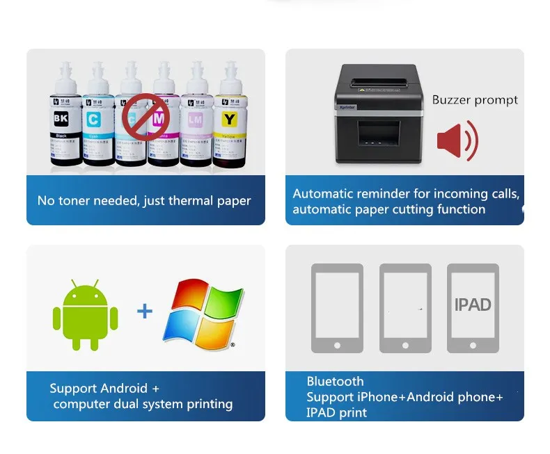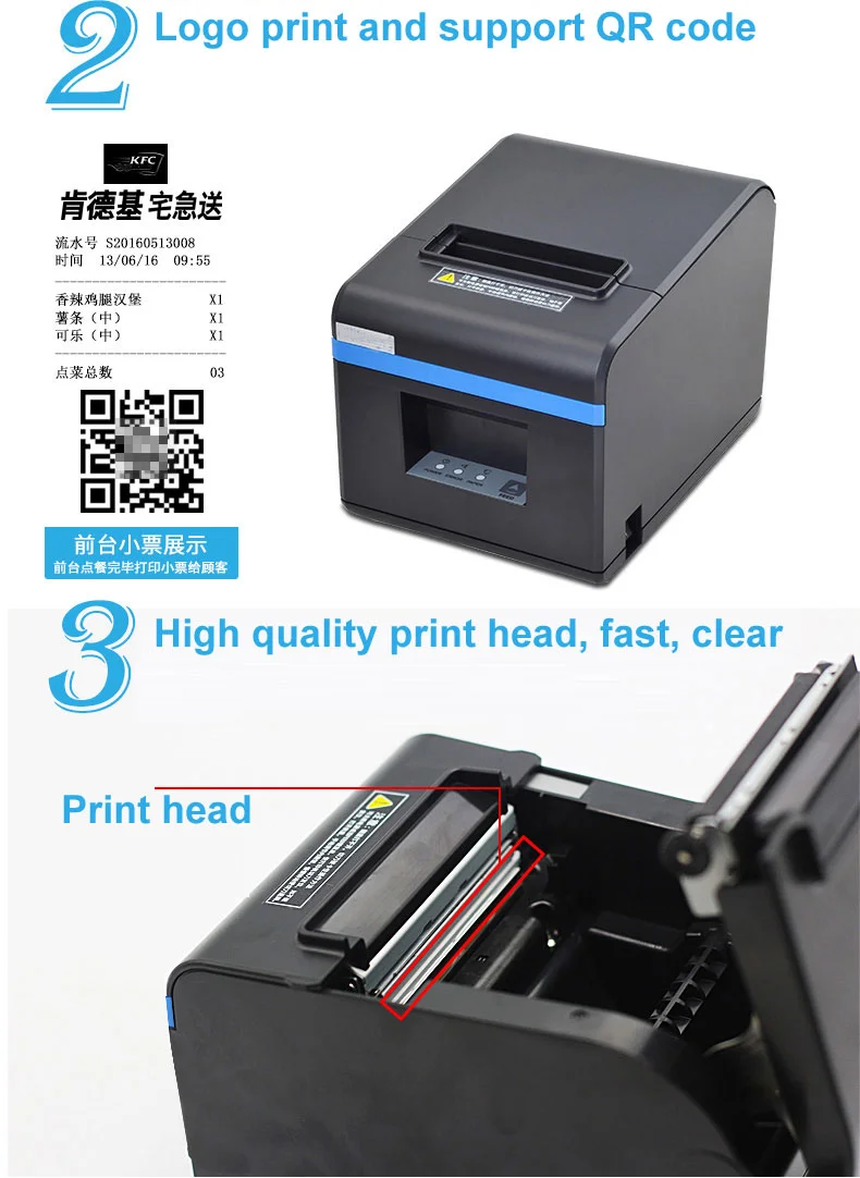 Высококачественный Оригинальный автоматический резак 80 мм Термопринтер для кухни/ресторанный Принтер POS принтерXprinter XP-N160II-это 80 мм (3 дюйма) USB/Lan/Bluetooth/WIFI принтер, который подходит для всех типов чеков, счетов и билетов, это высокоскоростной принтер с автоматическим резаком. Он имеет большое пространство для перевозки, чтобы держать Большой dia тепловой рулон бумаги, следовательно, также экономит на стоимости терморулона. Принтер работает со всеми основными операционными системами, такими как Windows, Linux. Принтер Lan/Bluetooth/WIFI также совместим с мобильными устройствами под управлением Android,IOS и windows. 160 мм/сек. высокая скорость печати.Совместимость ESC/POS.USB, LAN, USB + Bluetooth, WIFI + USB интерфейс опционально.Улучшенная производительность уплотнения для механизма и принтера, срок службы механизма может достигать 100 км и срок службы автоматического резака с 100 миллионов разрезов.Примечание: теперь Новая версия не включает компакт-диск с драйверами, драйвер должен скачать на официальном сайте или оставить свой адрес электронной почты, также можно отправить на ваш адрес электронной почты.