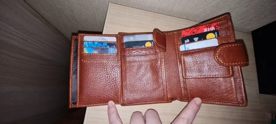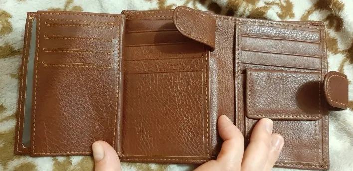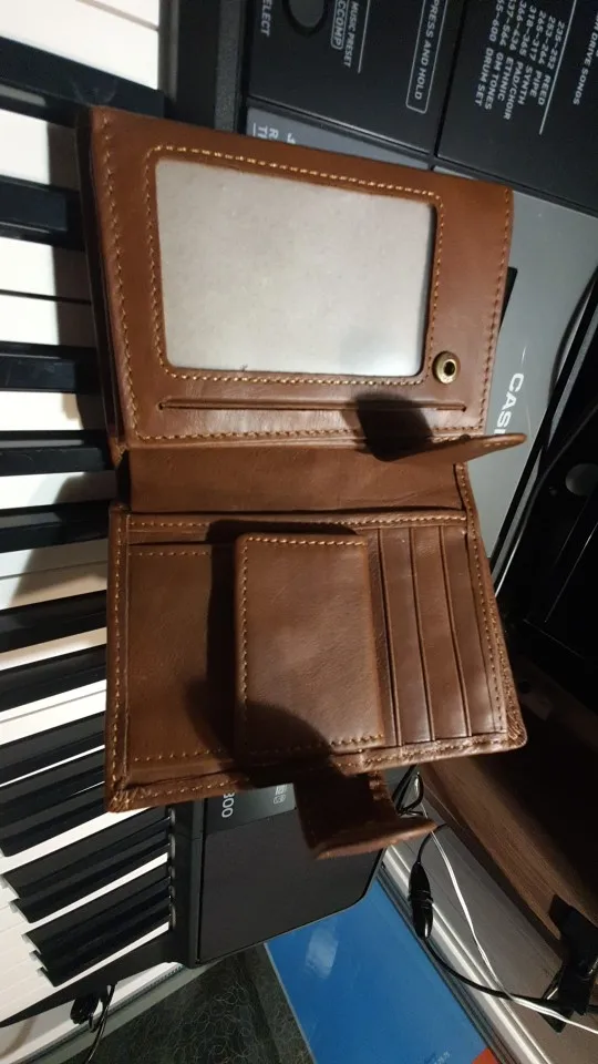 кошелек мужской, просто шикарный, швы ровные , места много , и при этом не очень большой! продавец большой молодец, товар отправил быстро и описание точное, в Украину пришло за 16 дней служба мист экспресс. спасибо большое продавцу!