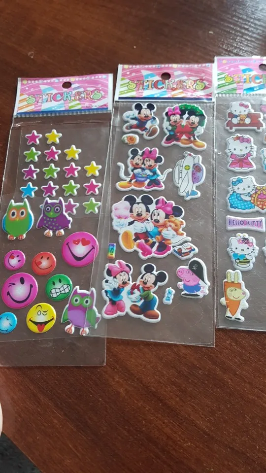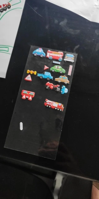 Мои дочери были очень счастливы. Это звук наклеек, который учится и собирается. Липкая сторона черная, а Наклейки Рельефные. Я доволен своей покупкой и рекомендую.