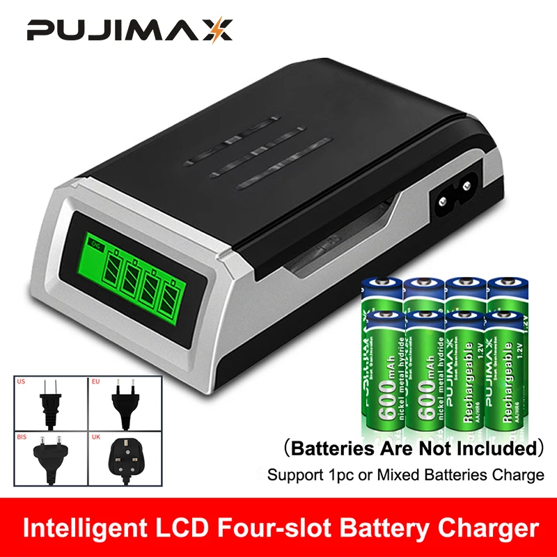 PUJIMAX LCD-002 ЖК-дисплей с 4 слотами интеллектуальное зарядное устройство для аккумуляторов AA/AAA NiCd NiMh
