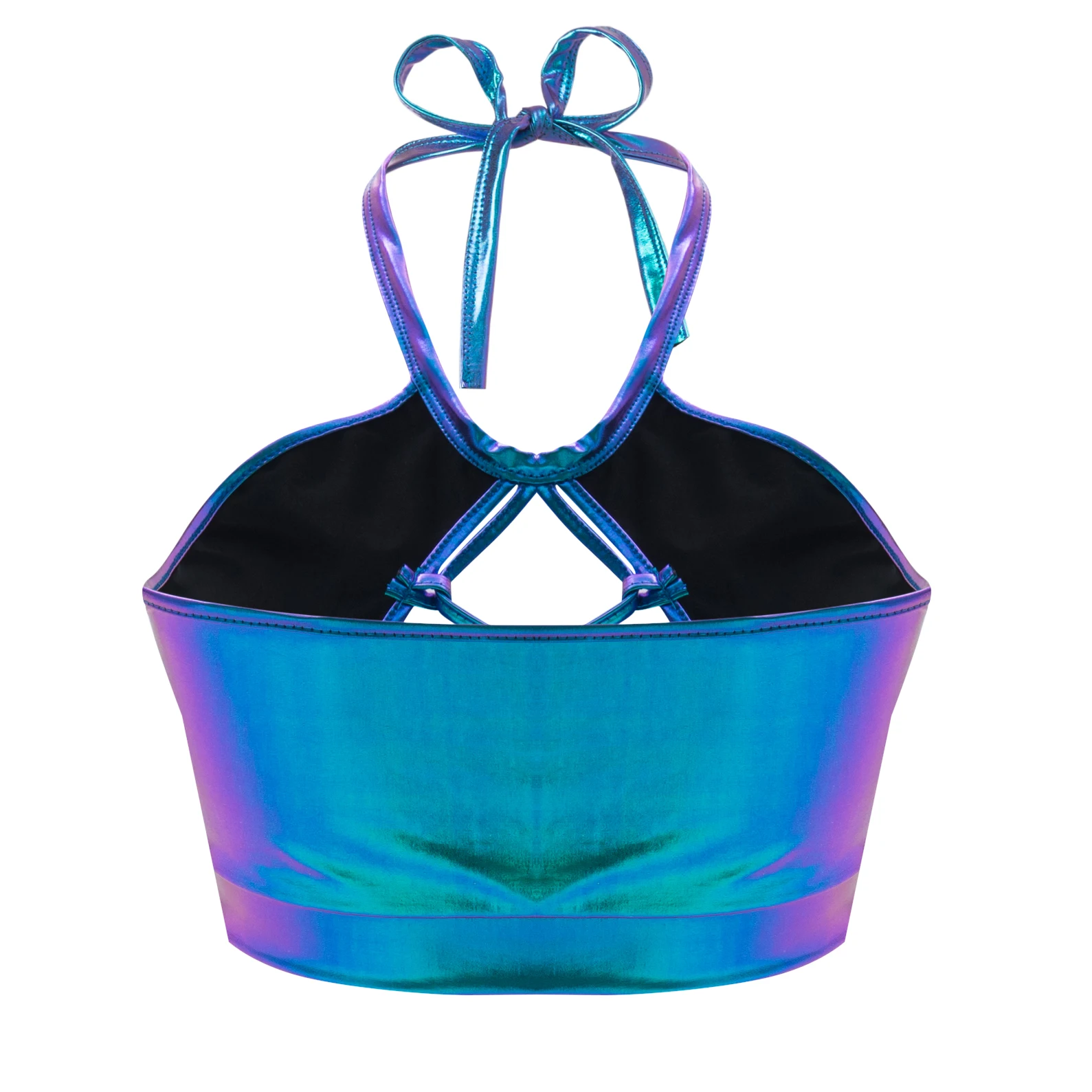 Женский Блестящий кроп-топ на бретелях с открытой спиной, на шнуровке, цвет в ассортименте