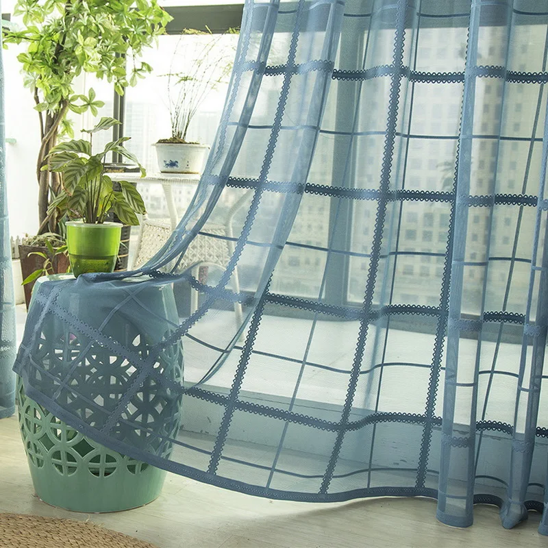 Синий Кастилия дом в клетку, отвесные занавески для Гостиная Кухня двери элегантные Универсальные обработки окна панели M079C