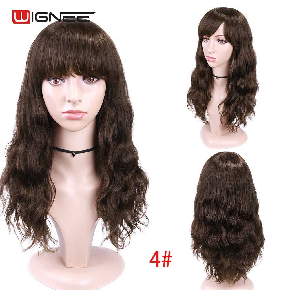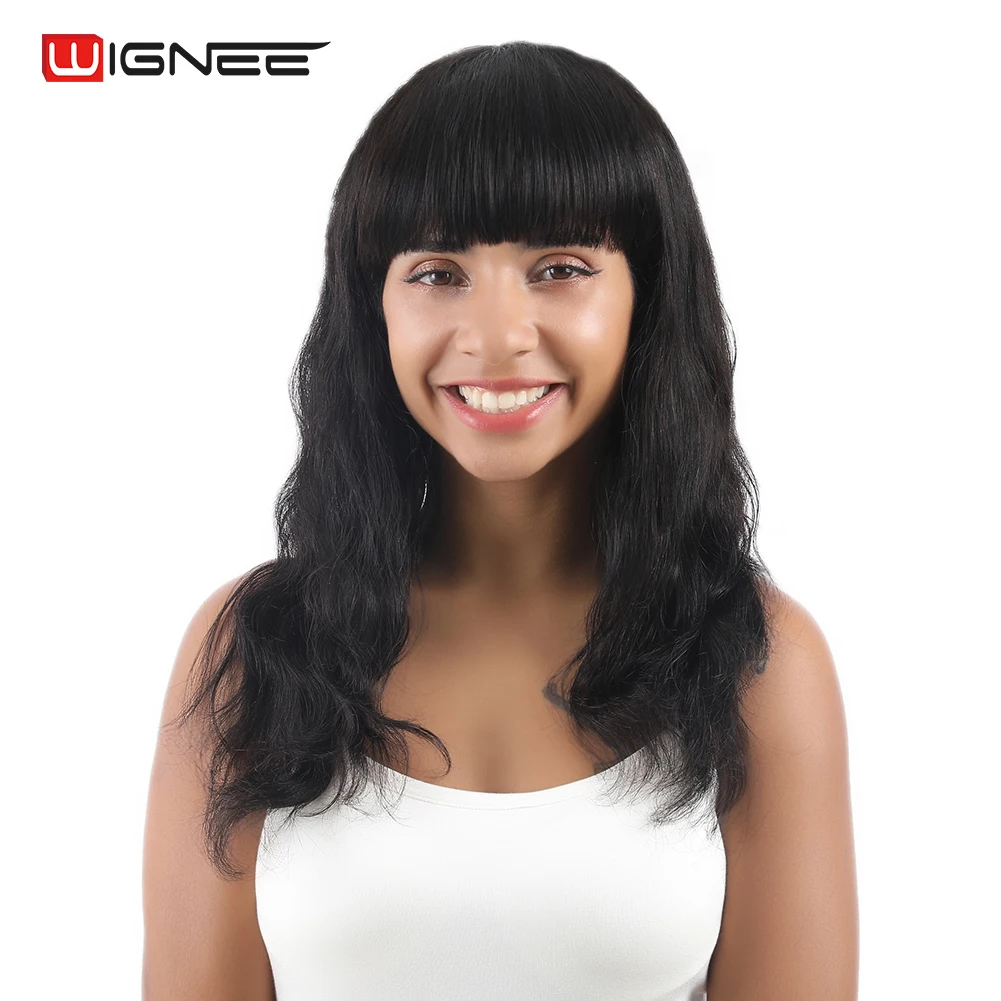 Wignee натуральные волнистые человеческие волосы парики с бесплатной челкой для черных женщин 150% высокая плотность без клея Remy бразильские дешевые человеческие парики