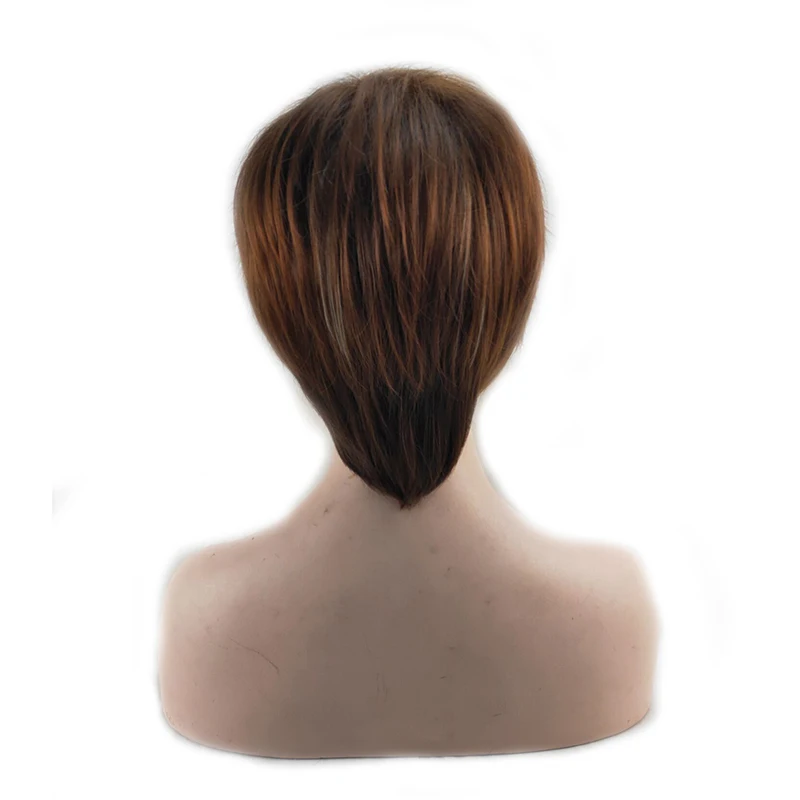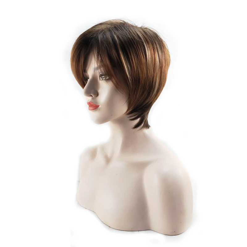 HAIRJOY, женский парик с прямыми челками, стрижка Пикси, искусственные волосы, каштановые, смешанные, Короткие парики, машинное изготовление
