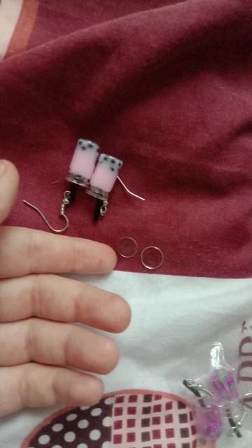 Озорные красивые серьги, легкие, соответствуют по цене и качеству. С серьгами продавец прислал подарок - маленькие салфетки. Все купленные позиции очень милые. Посылка в Донецк пришла очень быстро.