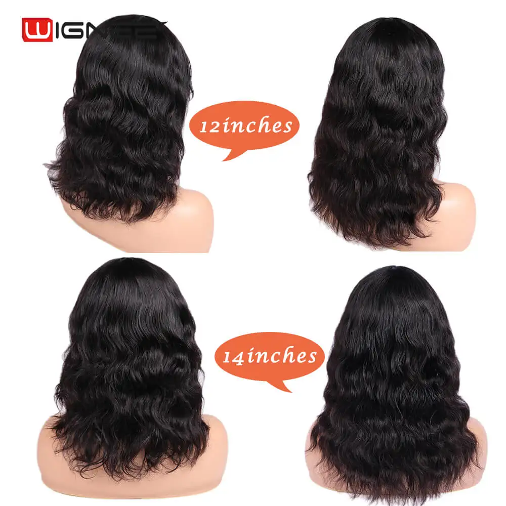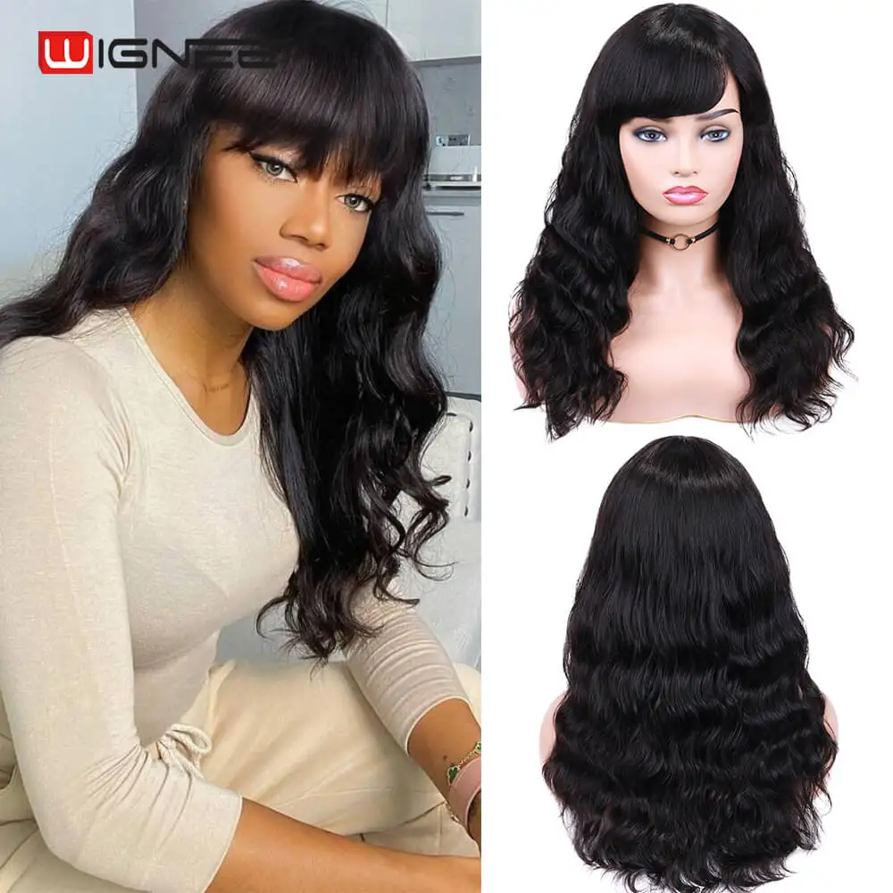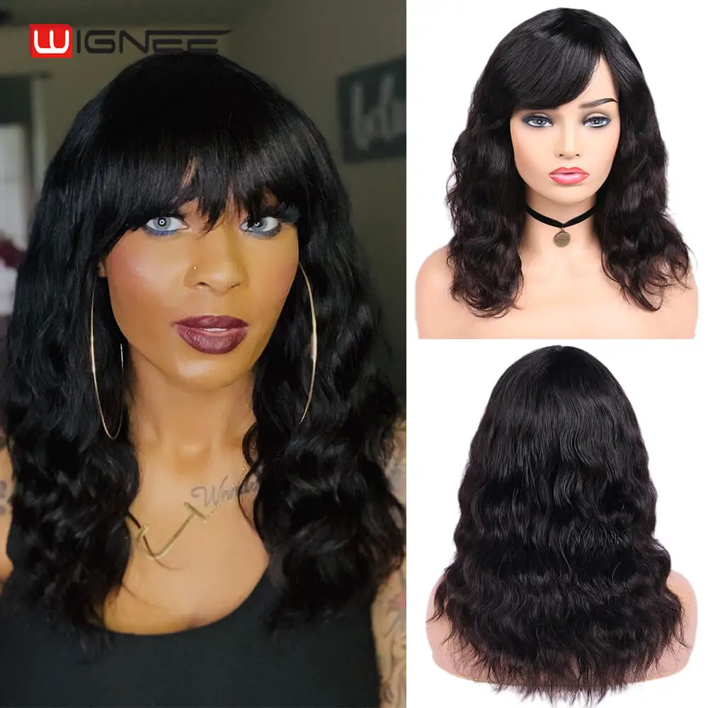 Wignee, натуральные волнистые человеческие волосы, парики с бесплатной челкой для женщин, Remy, бразильские мягкие волосы, 150%, высокая плотность, бесклеевые короткие человеческие волосы