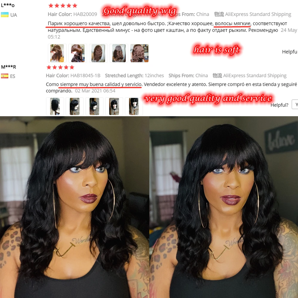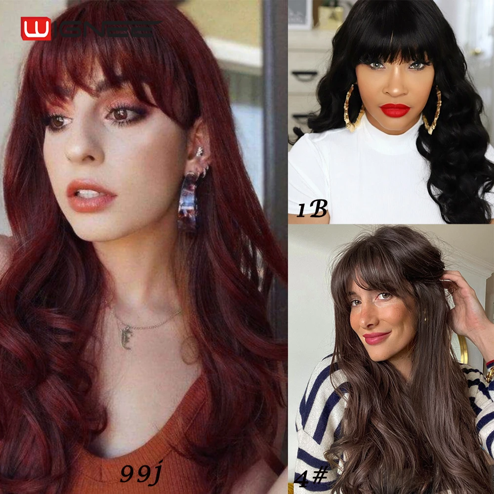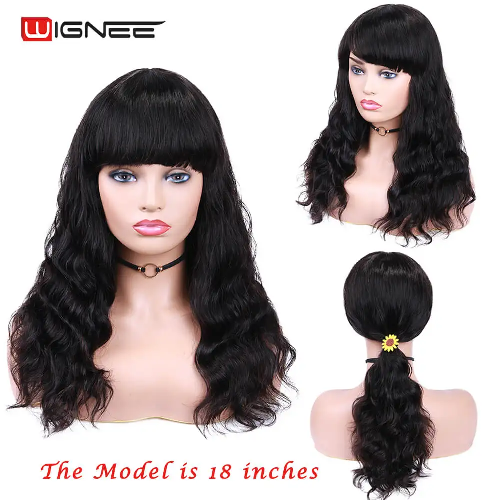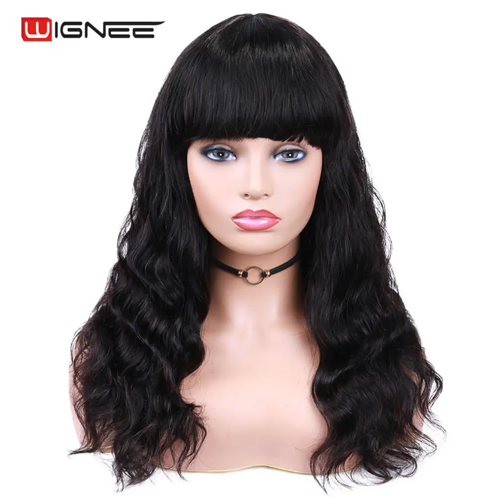 Wignee, натуральные волнистые человеческие волосы, парики с бесплатной челкой для женщин, Remy, бразильские мягкие волосы, 150%, высокая плотность, бесклеевые короткие человеческие волосы